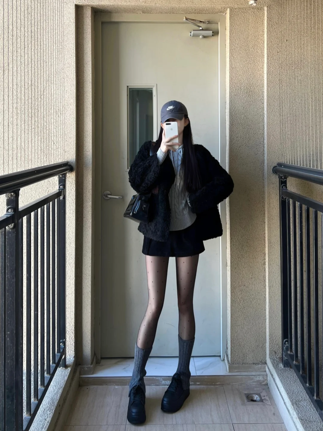 财阀千金穿搭 冬季穿搭 叠穿 波点丝袜 跨年穿搭