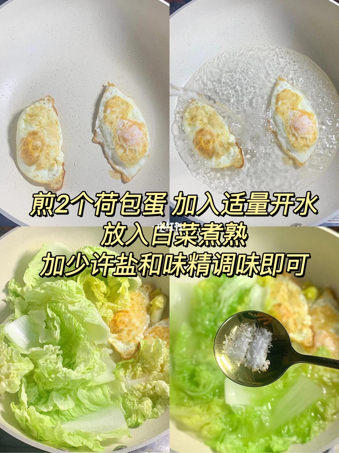 ✨分享白菜鸡蛋汤!白菜巨甜!汤鲜味美!低脂低卡!真心推荐给所有减脂的姐妹们[飞吻R] [彩虹R]食材:鸡蛋 白菜 [种草R]做法:少许油煎2个荷包蛋 加入适量开水 放入白菜煮熟 少许盐和鸡精调味即可✅简单易做 新手小白也能轻松搞定。姐妹们快来试试呀!