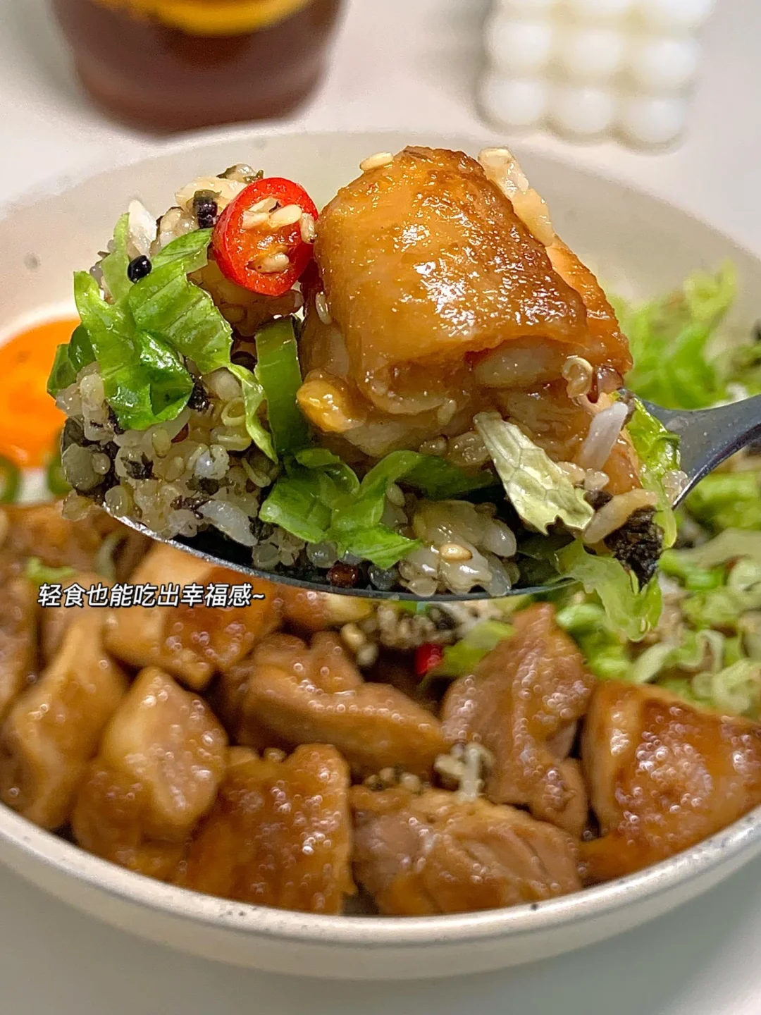 今天分享一款几分钟就能搞定的香煎鸡腿藜麦饭~轻食也能吃出满满的幸福感