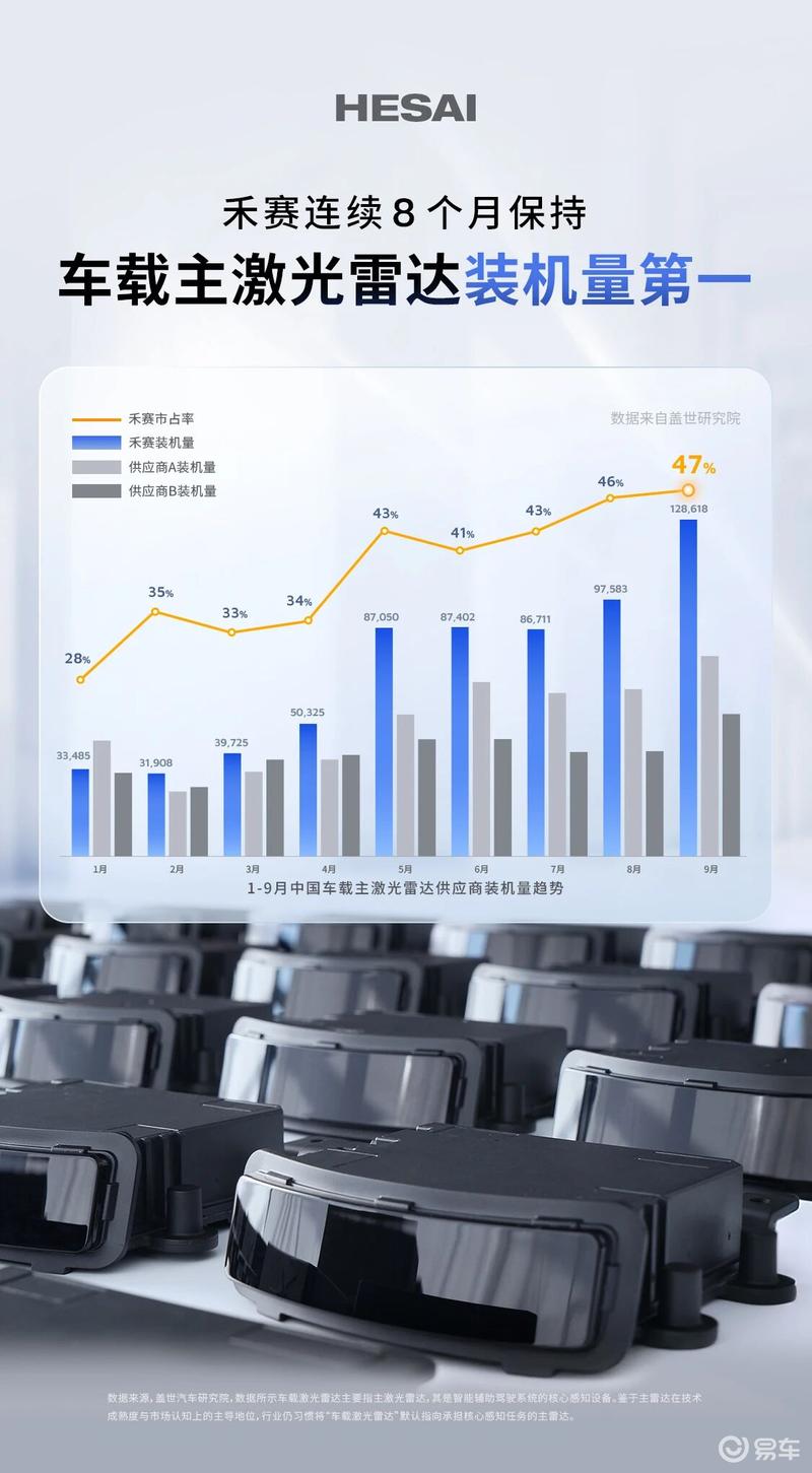 目前,禾赛已连续8个月中国主激光雷达市占率第一并继续保持高速增长,9月市占率已上升到47%。禾赛科技CEO李一帆表示,回望五年前,禾赛每季度交付不过千台,而下个季度禾赛预计交付量将超60万台,实现了近600倍的规模增长。