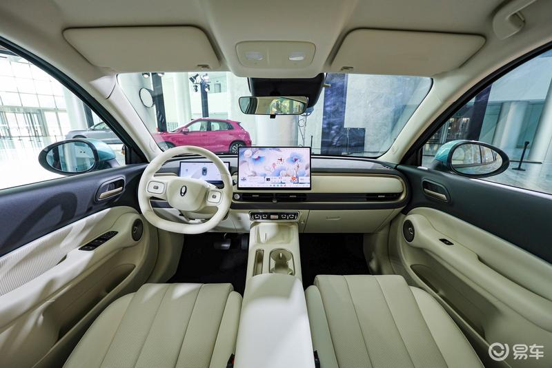 内饰方面整体氛围和谐简约,欧拉5采用全新设计,纯色双辐式方向盘后有液晶仪表屏、、15.6英寸中控屏,应用第三代CoffeeOS车机系统,CoffeeGPT还接入了DeepSeek。空调出风口下方保留部分物理拨杆,样式复古,镀铬材质看上去蛮有质感,扶手箱前侧配备单手机无线快充面板。中控台以及车内门板位置使用大面积格纹织物面料包覆,并提供晨曦白、漫午棕、星夜灰等3种配色方案。