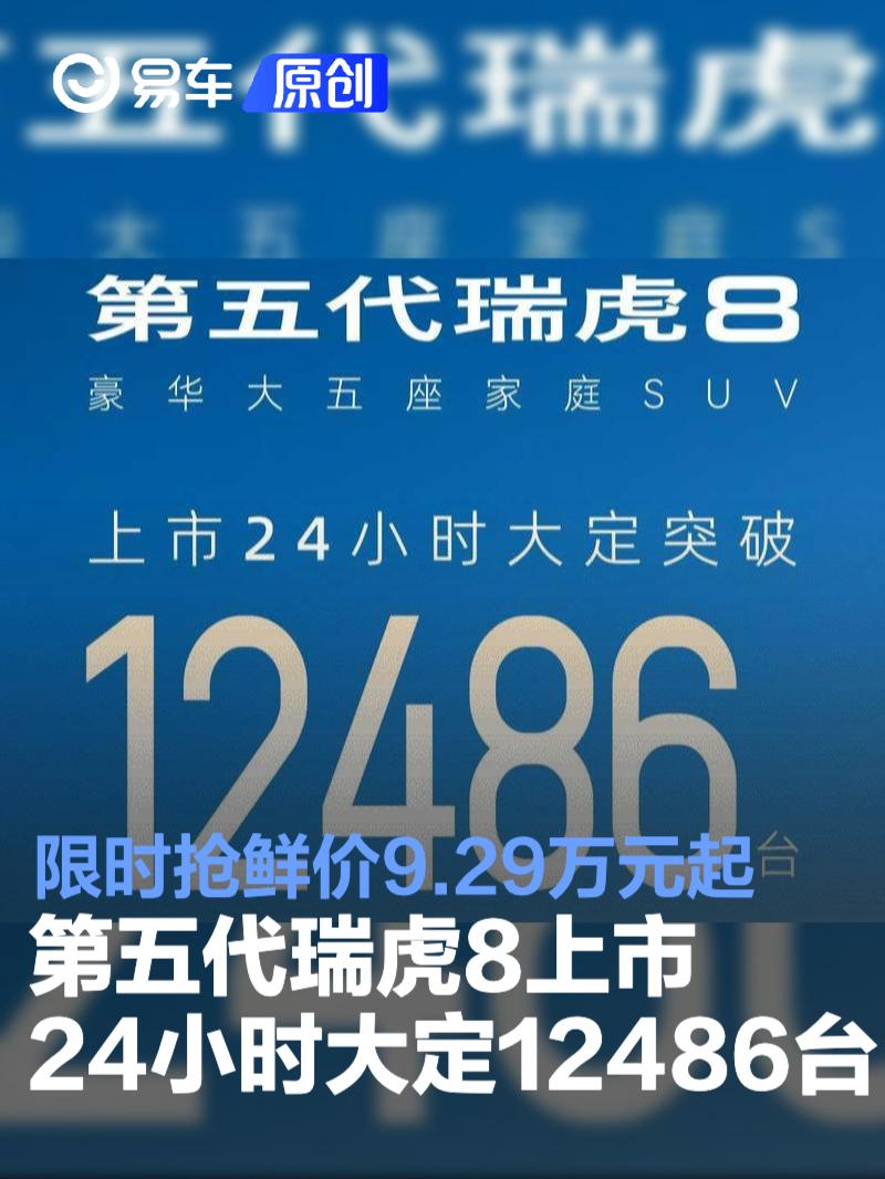 易车讯我们从官方获悉,奇瑞第五代瑞虎8上市24小时大定12486台。新车于11月10日正式上市,共推出4款车型,售价9.99-12.99万起,限时抢鲜价9.29-12.29万元。