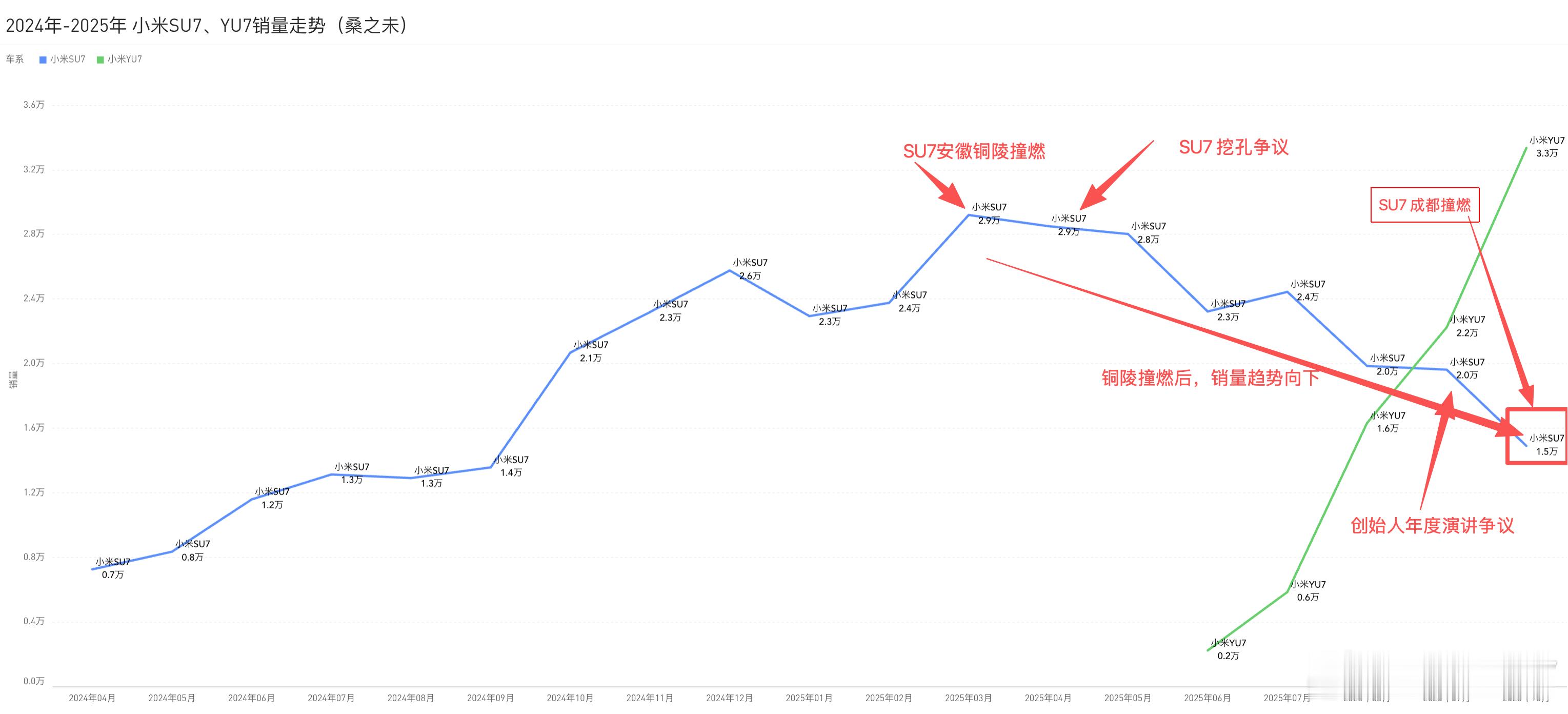 10月,小米销售4.8万辆,同比增长133%;小米SU7销售1.48万,环比下滑23%,同比下滑29%;小米SU Ultra在4月挖孔舆论事件之后,10月销售130台。小米YU7销售3.33万辆。SU7与YU7销售比例为31:69,10月特斯拉model 3与Y销售比例是26:74。网络舆论影响新车销量