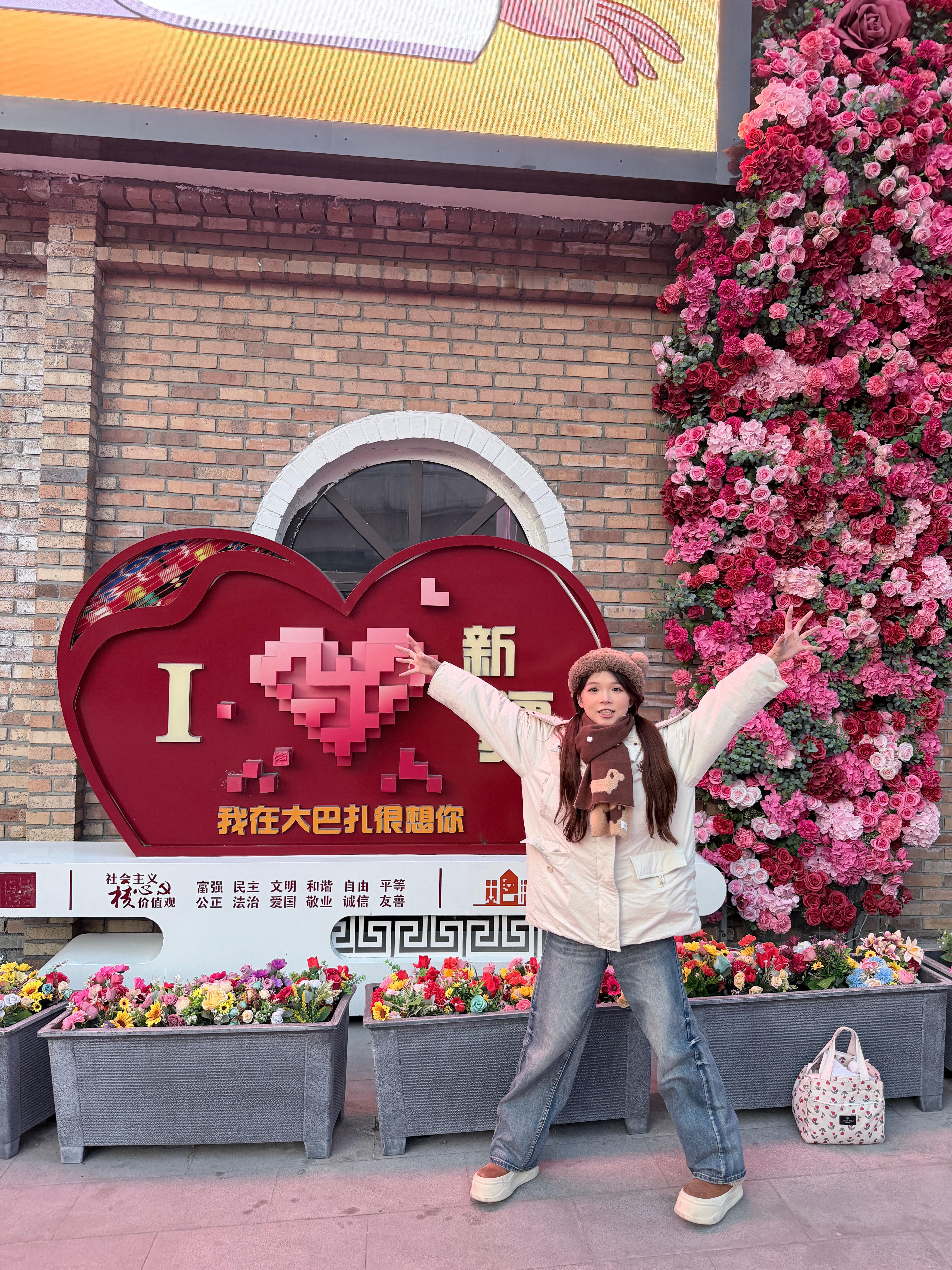 落地新疆第一天^^在飞机上一睡醒看到的!特别漂亮。我们四个小女孩就这样东西一大堆!我特别喜欢北方的一点是天玩的特别慢。六点出门还在日落!感觉白天有好多好多时间。我们去逛了大巴扎。这里随处可见这些阿凡提馕家族的小挂件真的可爱死我了啊啊啊啊买了正飞的酸奶酪。超级好吃。。然后我买的是奶皮子的。。。额别买。我是奶皮子真是爱不起来啊!这里居然还有酸奶粽子哈哈哈哈我觉得好有意思好新奇。但是我买的这个味道还是🍠有人推荐的感觉也是太甜了一般好吃。要是不淋酱我都觉得更好吃!琪琪今天美而萌之。是一个妆容淡淡的小女孩晚餐吃了大盘鸡还有沙什么炒蛋啊?!忘记了这个爆炸好吃我去!炒的特别香!其实我衣服里面就穿的这么不体面!怎样