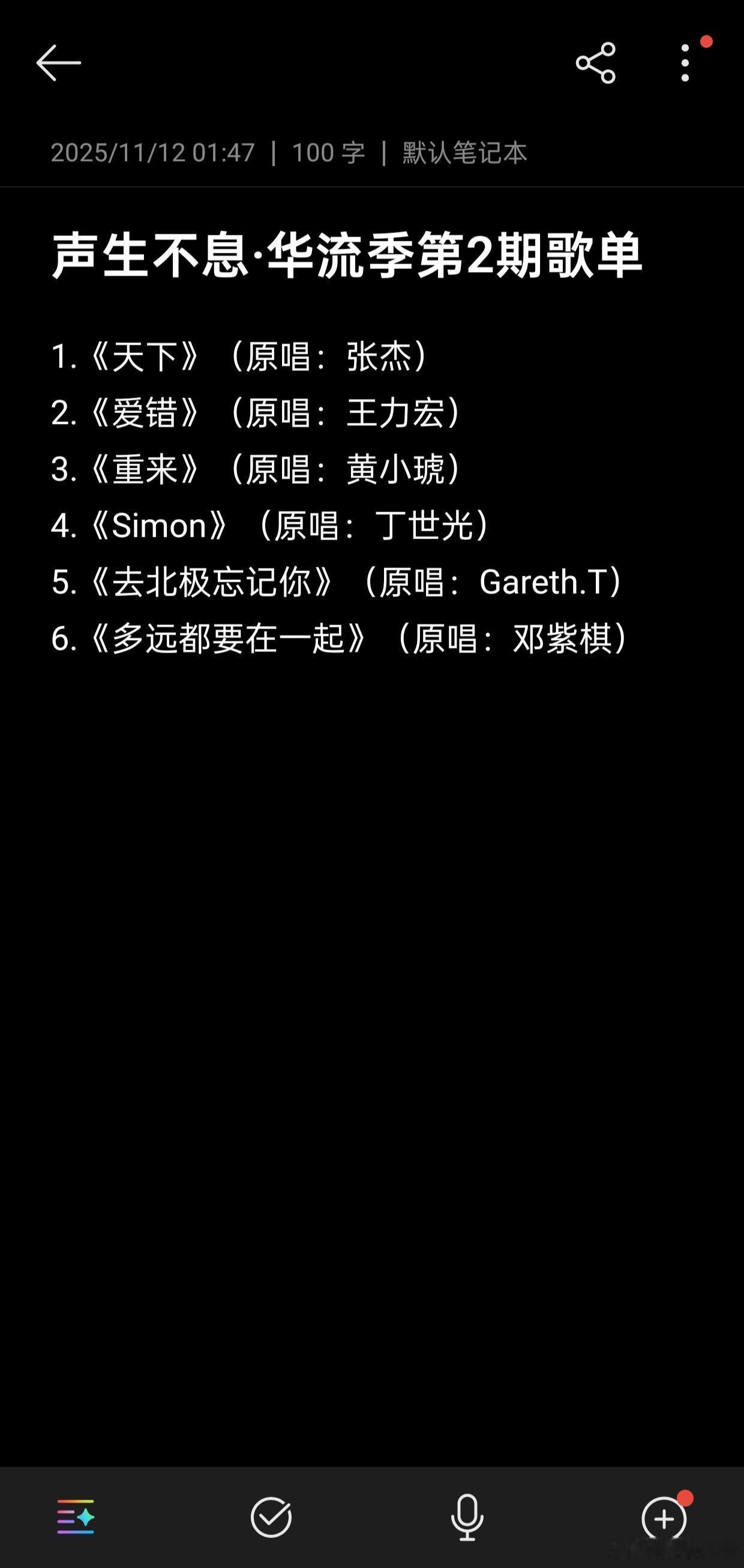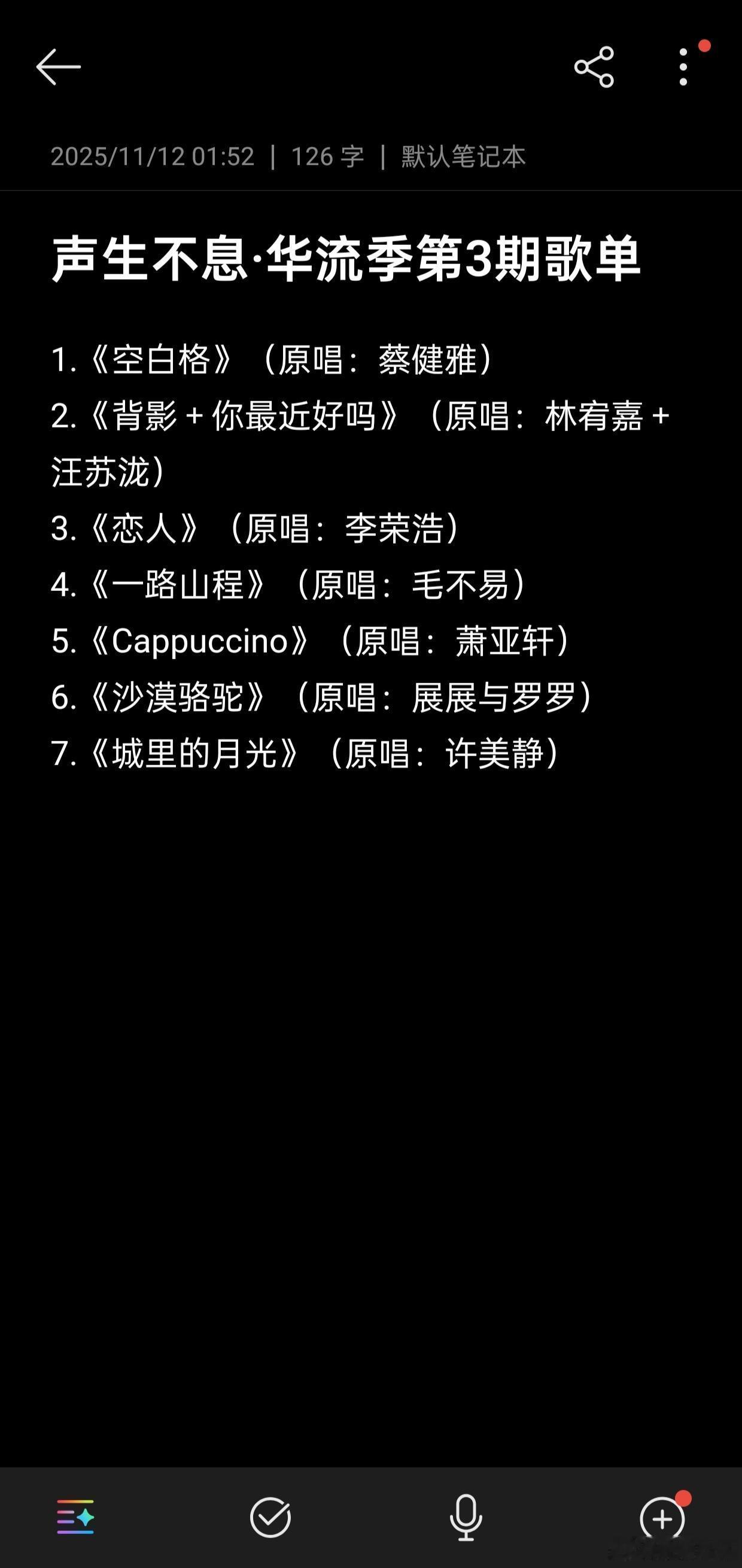 《声生不息·华流季》1-3期歌单