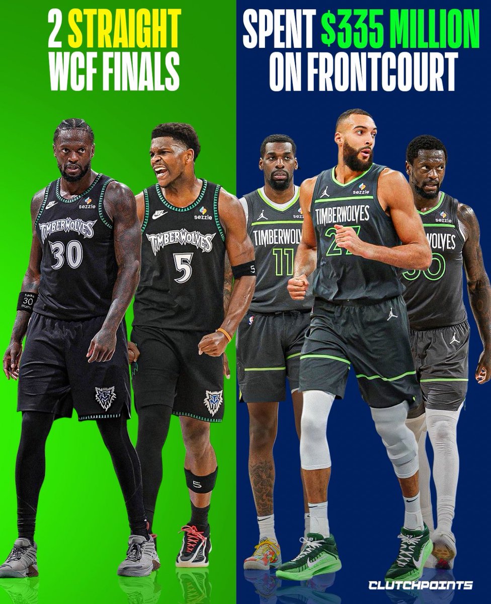 TheWolvesareall-inongoingbig,andit'scostingthem$335million💰Inthe2024offseason,theWolvescould'vecontinuedtoreshufflethedeckandaddbetterpiecesaroundAnthonyEdwardsinthenearfuturewithRudyGobertdeclininghisplayeroption.Itmeantthatthey'refrontcourttrioofGobert,NazReid,andJuliusRandlewouldallhitfreeagencyin2025,openingupatleast$50millionincapspace.TheyalreadyletgoofKATdespitemakingtheirfirstconferencefinalsinoveradecade,sotechnicallyeveryonebutAntwasupforgrabs👀ButtheWolvesre-signedGoberttoa3-year$100milliondealbeforetheseasonstarted.Oncetheseasonended,theymadetheir2ndconsecutiveconferencefinals.Topossiblymakeitathirdconsecutiveappearancethisseason,theWolveschosesizeandchemistryastheirblueprinttosuccess.💰SignedReidtoa5-year$125millioncontract.💰SignedRandletoa3-year$100millioncontract.That'salotofmoneytospendonthreeplayerswhichdoesn'tevenincludeyourteam'sbestplayer.ButtheWolvesaredoublingdownonwhat'sworkedforthemthelastfewyears.Andifitendsinanotherdeepplayoffrunorpossiblyachampionship?Prettysurenoonewillcareaboutthepricetag🏆
