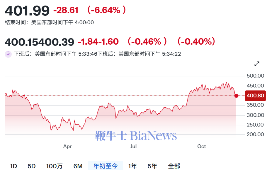 午盘交易期间,特斯拉股价一度跌破400美元大关,触及9月15日以来的最低点。