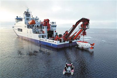 ●“探索三号”是全球首艘具有破冰能力的载人深潜作业母船,搭载的“奋斗者”号载人潜水器可实现全海深、全海域载人深潜。