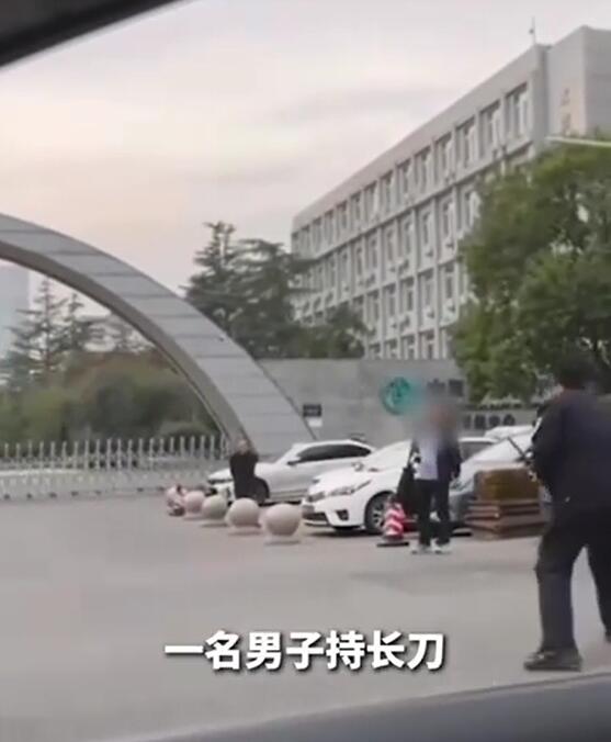 近日,河南郑州某银行门前,一男子持刀与警方对峙并多次挥刀。双方僵持时,一名越野车车主撞翻了持刀男子,民警迅速上前将持刀男子制伏。