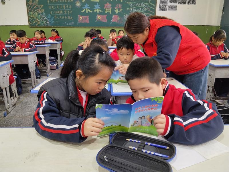 近日,谯城区牛集镇张沃村志愿者走进红枫小学,开展“护苗行动入课堂法佑童心助成长”主题宣传活动。