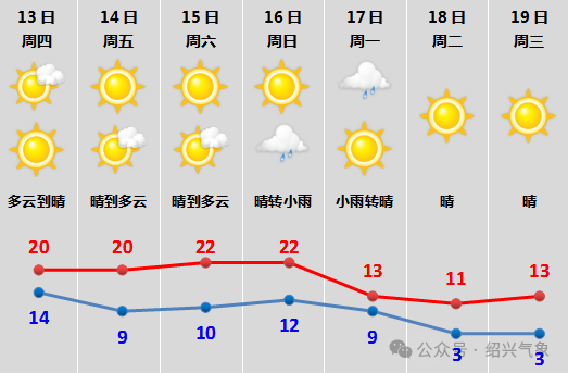 明天最低气温:9~11℃,与今天基本持平;后天晴转小雨,12~22℃。