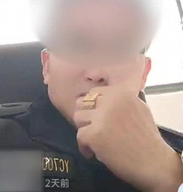 近日,一名江苏IP的网民在社交平台发布视频,视频中一名戴眼镜的中年男子,身穿“城市管理执法“的制服坐在办公室内拿着手机自拍,视频一开始他摸了一下鼻子,秀出中指上的一颗金色的大戒指。