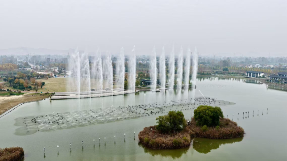 阳光大草坪上,孩子们在无动力乐园尽情玩耍。最亮眼的是草坪后方的皖北第一大音乐喷泉,长168米,最高喷射高度达118米,配合声、光、电、火和3D水幕电影,成为夜间震撼视听的盛宴。