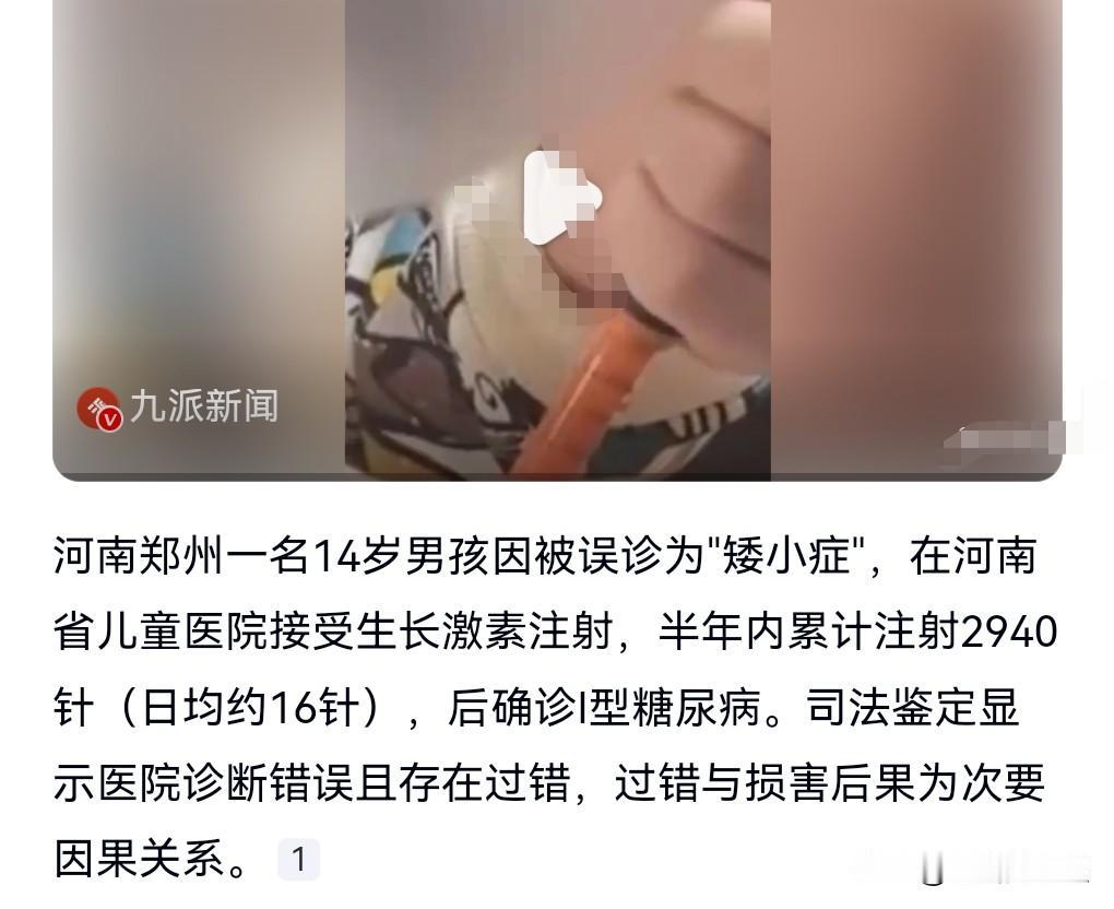 这真是庸医误人啊。 近日(报道时间)。 14岁男孩被误诊矮小症打了2940针,想不到要打这么多针,实在是太让人震惊了。 结果男孩因此患上了糖尿病。 每天要打四针胰岛素。 这真的是太可怕了,每天都要打这么多针。 这也太不方便了吧。 太影响人生的体验。