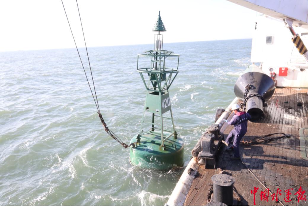 此次换标计划涵盖公用标74座、专用标12座,总计86座航标,作业范围包括秦皇岛港主航道、十万吨级航道、东西航道及葫芦岛港柳条沟港区、绥中港区等区域。秦皇岛航标处发挥海事监管和航海保障一体化融合发展优势,联合秦皇岛海事局、秦皇岛市公安局港航公安局等多部门协同作战,“海巡0432”轮、“港航公安号”全程护航。作业人员利用有利天气,有序开展吊装、锚链更换、标体投放等工作,安全高效推进作业。(见上图)
