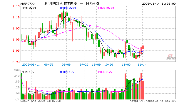 11月14日,截止午间收盘,科创创新药ETF国泰(589720)涨0.73%,报0.972元,成交额1.80亿元。科创创新药ETF国泰(589720)重仓股方面,百济神州截止午盘跌0.49%,百利天恒涨0.39%,艾力斯涨0.73%,君实生物涨0.31%,泽璟制药涨1.08%,荣昌生物涨2.08%,博瑞医药涨1.67%,特宝生物涨1.44%,益方生物跌3.24%,迈威生物涨0.81%。