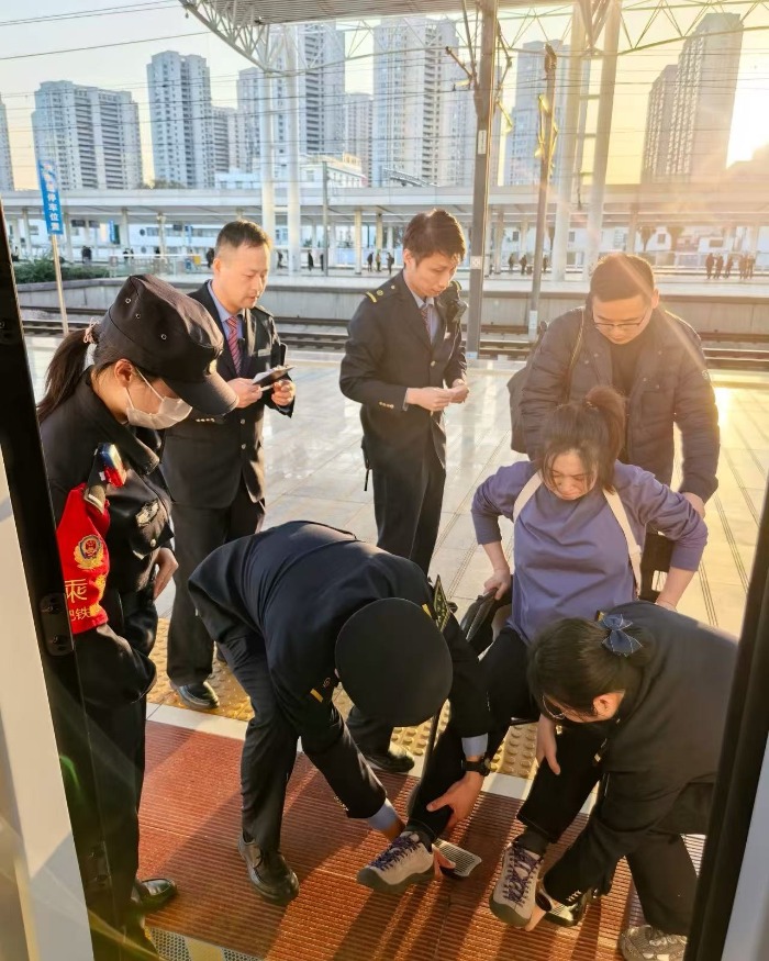 列车准点抵达常州站后,张露与早已等候在站台的车站工作人员无缝对接,小心翼翼地将孕妇护送下车,平稳移交至工作人员手中。随后,孕妇被紧急送往附近医院救治。当晚9时,孕妇家属特意致电张露表达谢意,告知宝宝已顺利降生,母子平安。