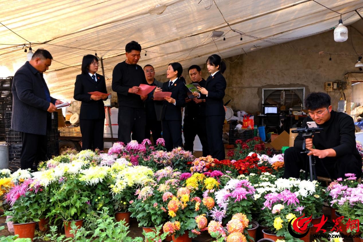 山东省郯城县人民法院深入贯彻落实党的二十届四中全会精神,积极延伸司法触角,提升司法服务效能,以实际行动推进基层社会治理现代化。11月11日,该院法官在辖区郯城街道埝里村千亩菊花基地开展普法宣传,提供劳动用工、合同签订、土地承包等方面的精准司法服务,让司法阳光照亮每一片花田,把司法温暖送进花农心里。