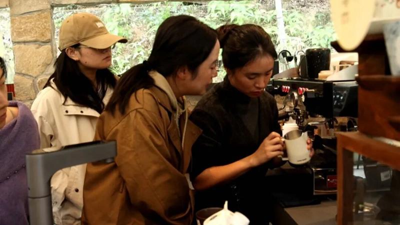 学员程子晶:“这次我参加了咖啡和书法的公益课,今天我也跟随老师来到这里学习咖啡的实践课,刚刚我也动手操作了一下,觉得非常有意思,学习了一个新的技能。”