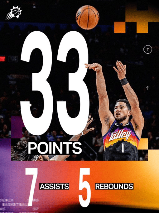 赛后,太阳官方发布布克数据海报,并配文道:“本赛季第7次单场得分30+。”