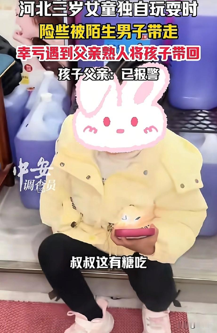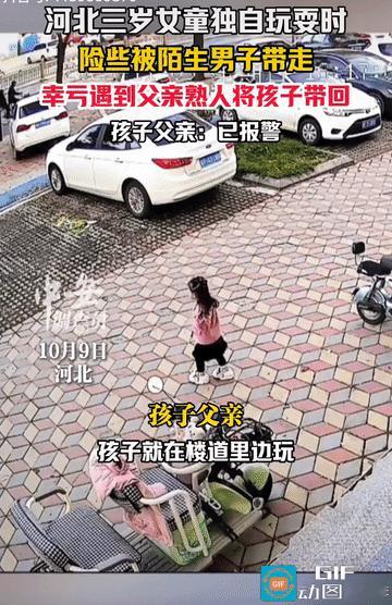 这下解释不清了!河北,三岁女童在门口玩耍,突然就跟着陌生人走了,幸运的是遇到了熟人,这才阻止了孩子继续跟着,事后,孩子说,那个叔叔让她过去,有糖给她吃。网友:这男的感觉有点冤枉啊,小孩子有时候也会说谎的,这男的目不斜视看都没看小孩一眼。 从曝光的视频来看,女孩自己正在玩,旁边一位男子路过,女孩就跟着走了,而那个男子全程没有看女孩或者是和女孩说话。 男子是一直都是往前走,直到女孩被熟人叫住后,那个男子也没有停住或者回头看。 事后,女孩在爸爸的质问下,说是那个男子让她跟着走的,有糖吃。 此事引发了热议!有网友表示, 这个男的自始至终没看小孩子一眼,没改变步伐,所以大概率这孩子胡说八道了,而家长居然想凭莫须有的想法给人治罪。 也有网友表示,这个真是说不清,有一次我在街上正常走,一个小姑娘就跟着我,哭兮兮的找不到家长。走了段路她居然说:“叔叔你要带我去哪?”我头都大了。我只好站在那里等她家长,结果她奶在旁边茶楼打麻将。 不过,防人之心不可无,小心谨慎一点为好。