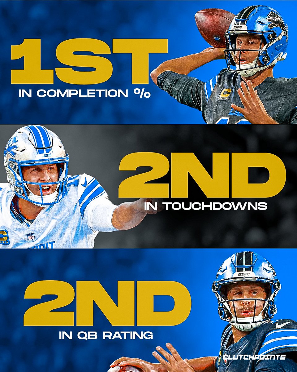 BeingunderratedisJaredGoff'sM.O.MostoftheQBtalkwillgotoguyslikePatrickMahomes,BoNix,andDrakeMaye.ButGoffisquietlyhavingthebestseasonofhis10-yearcareer.Aninsanefeatforsomeonewhohasthrownfor4,000yards5timesandmissedonly5gamesthelast9years.Justcheckouthisrankingsthroughthefirst10weeks.🔥20TDs(2ndinNFL)🔥74%completionpercentage(1st)🔥117.1passerrating(2nd)🔥8.2yards/attempt(5th)OnlyoneotherplayerranksintheTop5ofeachofthosecategories(DrakeMaye).Andhecurrentlyhasthe2nd-highestMVPodds(perTheAthletic)whileGoffissomewherehoveringaroundthetop10.HehasthestatsandisleadingtheLionstooneofthebestrecordsintheNFC.Ifthisisn’tanMVP-caliberseason,whatis?