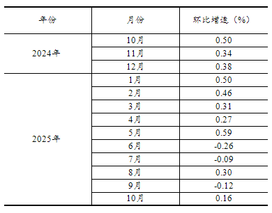 根据季节调整模型自动修正的结果,对2024年10月份以来的社会消费品零售总额环比增速进行修订。修订结果及2025年10月份环比数据如下: