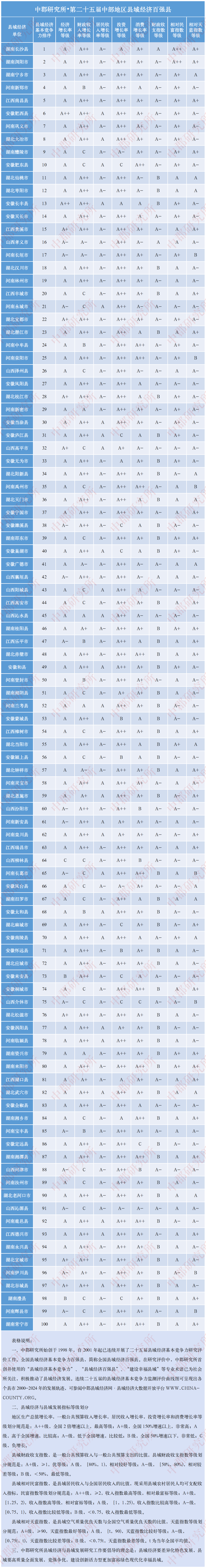 县域经济是县域发展的物质基础,县域经济基本竞争力反映县域经济强弱。第二十五届县域经济基本竞争力研究评价中,利用政府工作报告和统计公报等公开资料,采用县域经济总量、均量、质量、速度和活力等基本指标,依据县域经济强县指数,研究评价出全国县域经济基本竞争力百强县(即县域经济百强县)。江西省两地上榜,分别为排名29的南昌县和排名82的贵溪市。