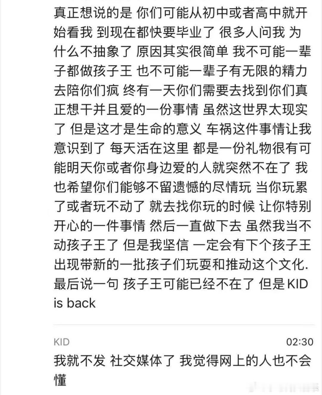 复活前段时间去世的孩子王复活了! 孩子王在粉丝群宣布回归,并解释了车...