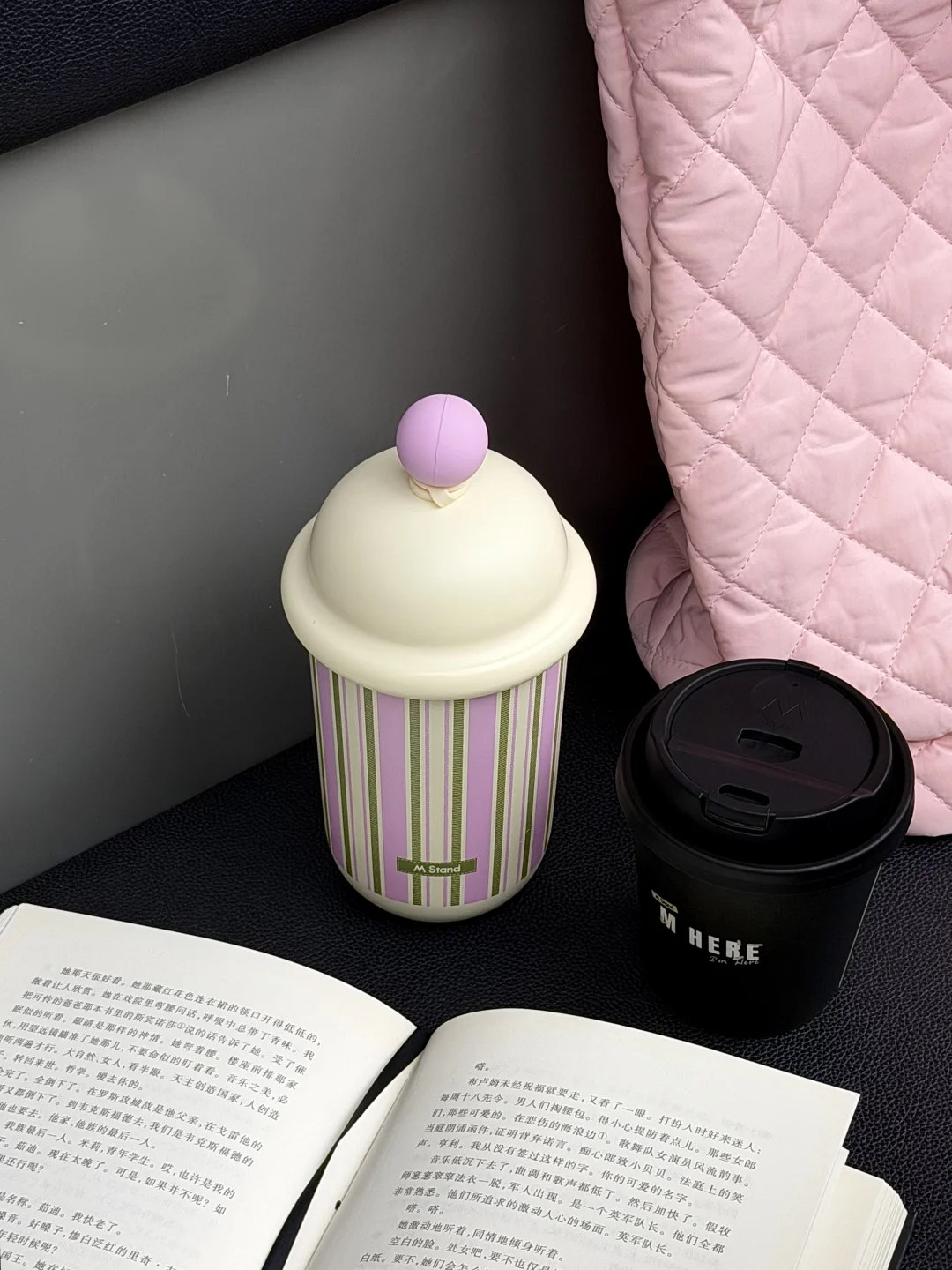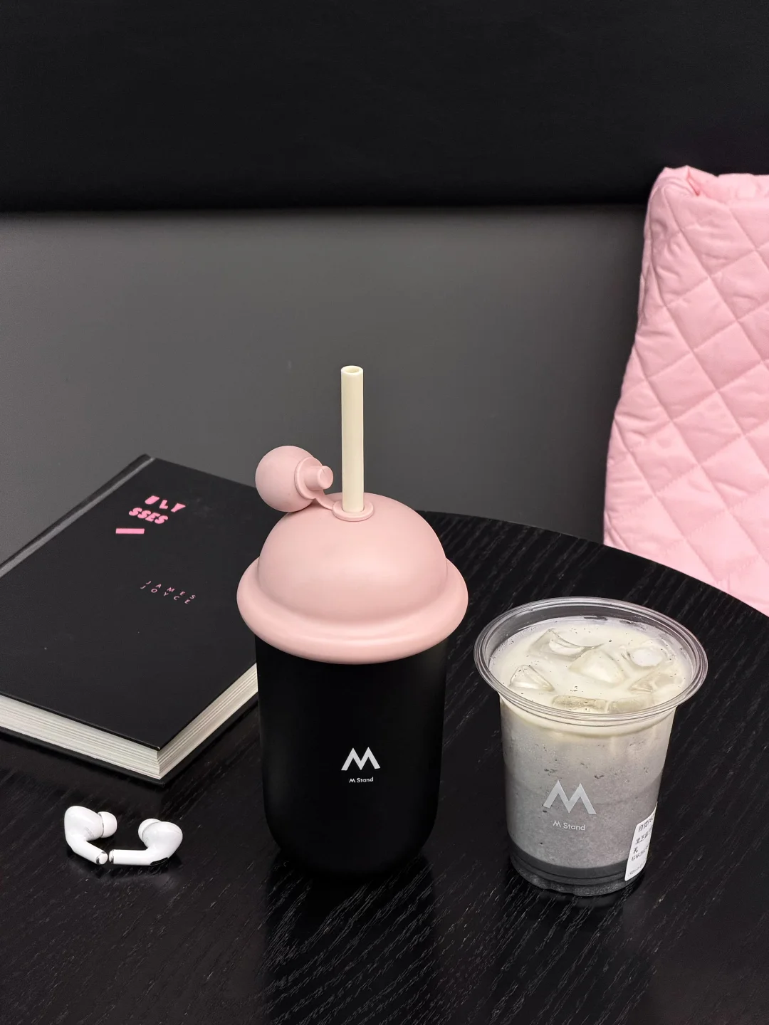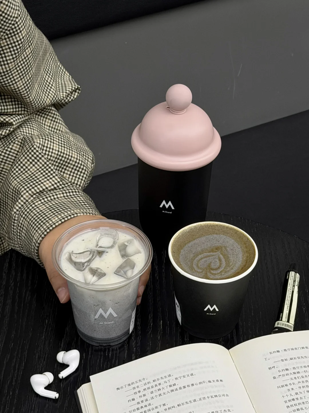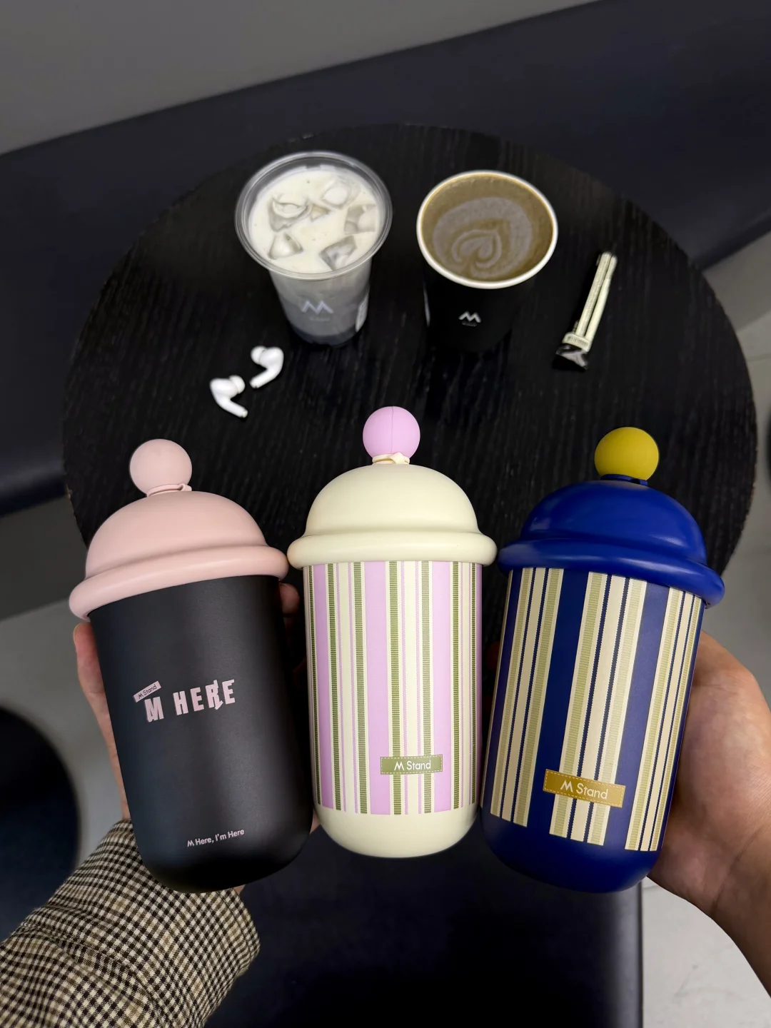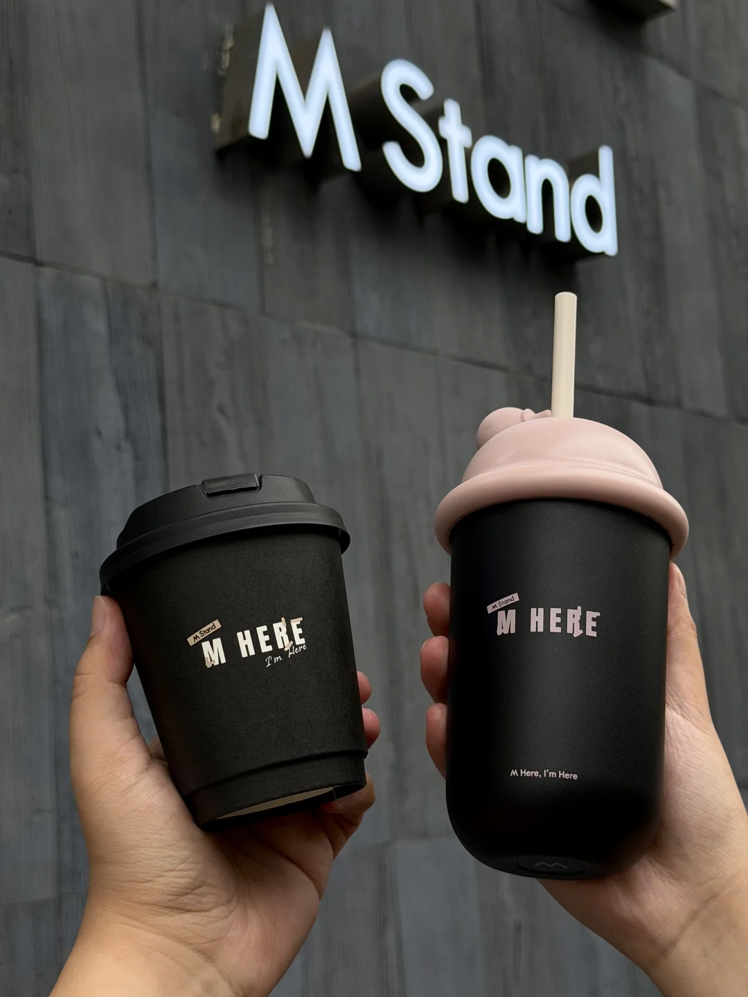 早起就是为了M Stand8周年限定的冰淇淋吸管杯!上手质感很不错,是不锈钢材质的!三种颜色纠结了很久,每一个设计都很有特色,最后还是选了黑粉色的🥹🥹!! 热饮还有“M Here”周年主题黑色纸杯,搭配一杯黑芝麻巴斯克拿铁,搅拌均匀再喝,意式浓缩跟黑芝麻香味匹配度💯,冷饮的黑芝麻巴斯克牛乳的奶香会更加突出!