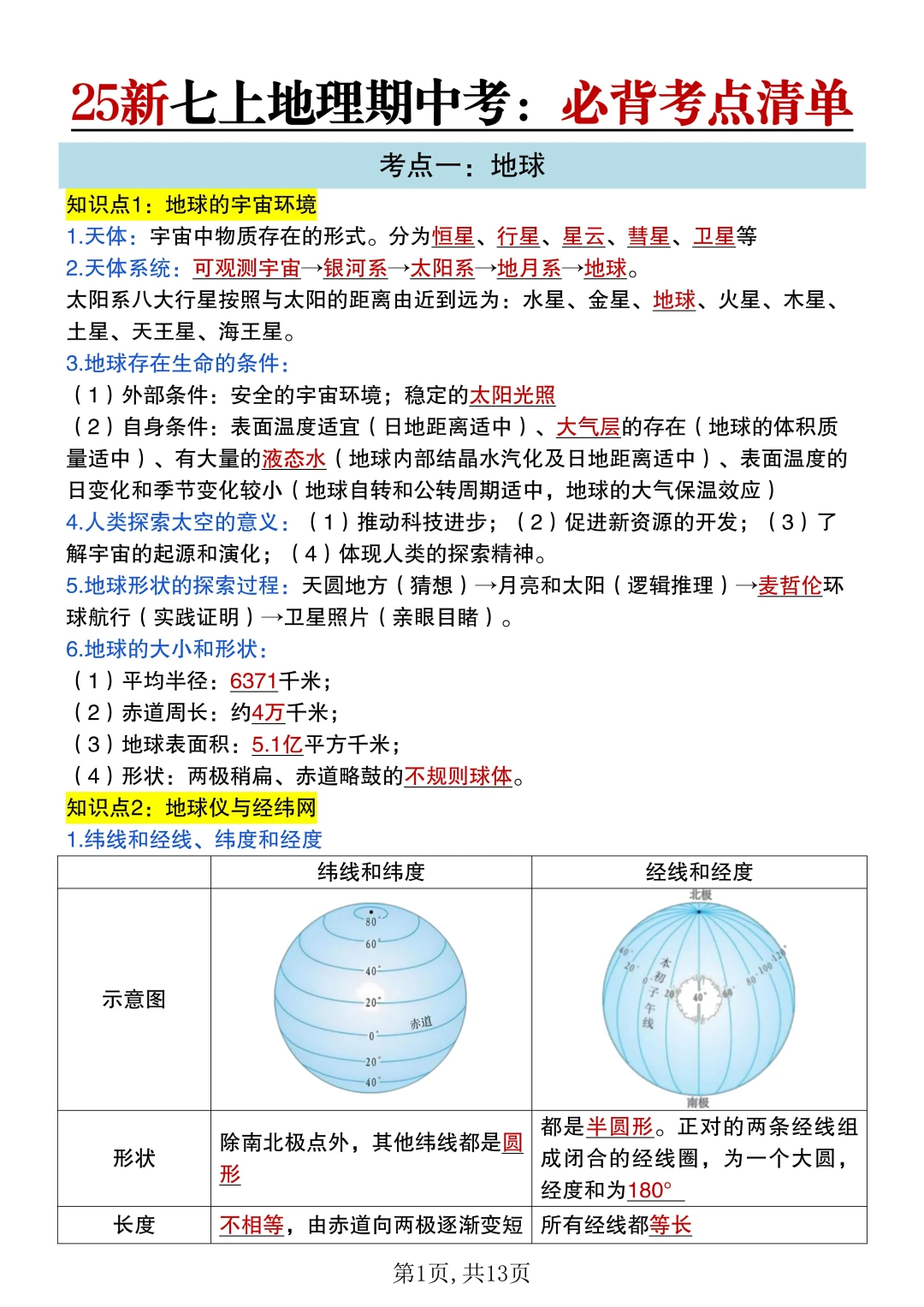 七年级上册 七上地理 家长收藏孩子受益 知识点总结 必考考点 七年级 新初一 初中地理 每天进步一点点 学渣逆袭指南 期中复习期中考试提高孩子学习成绩
