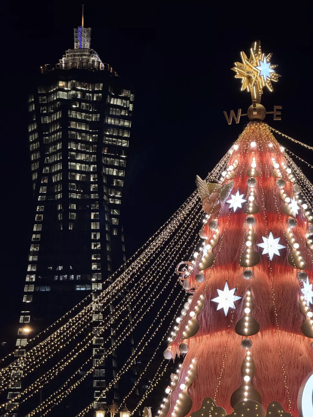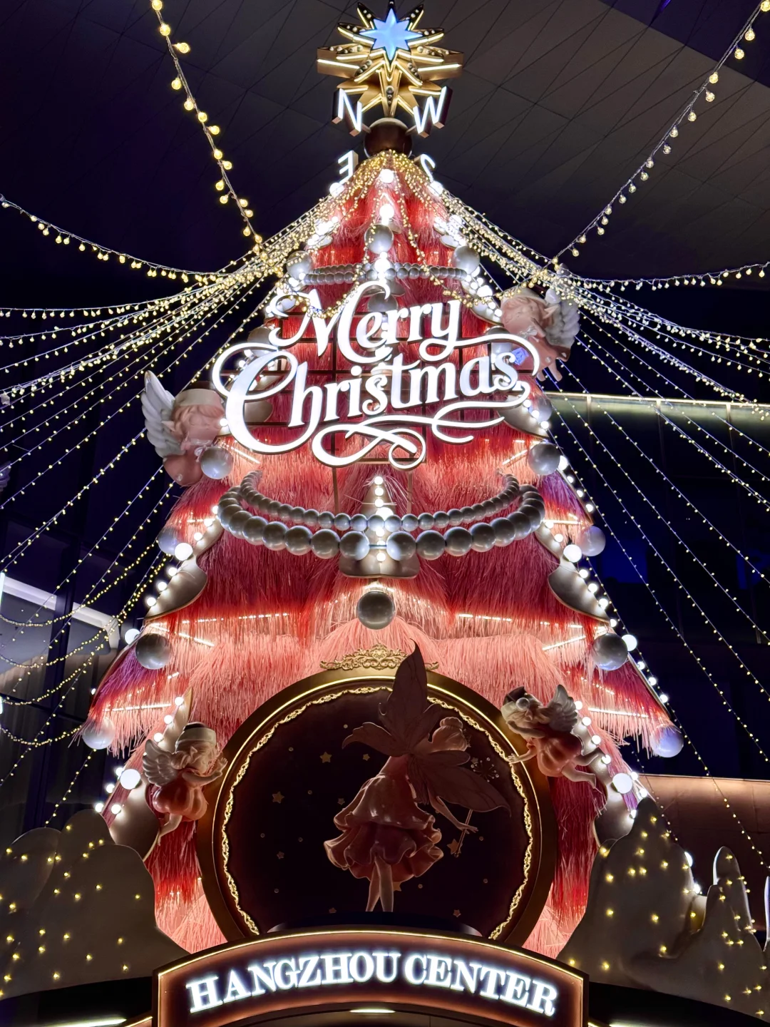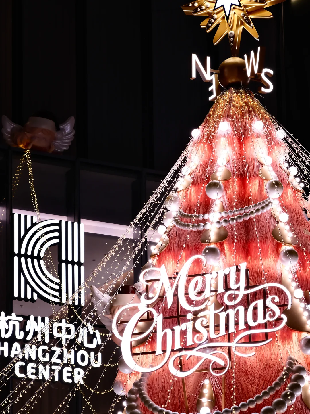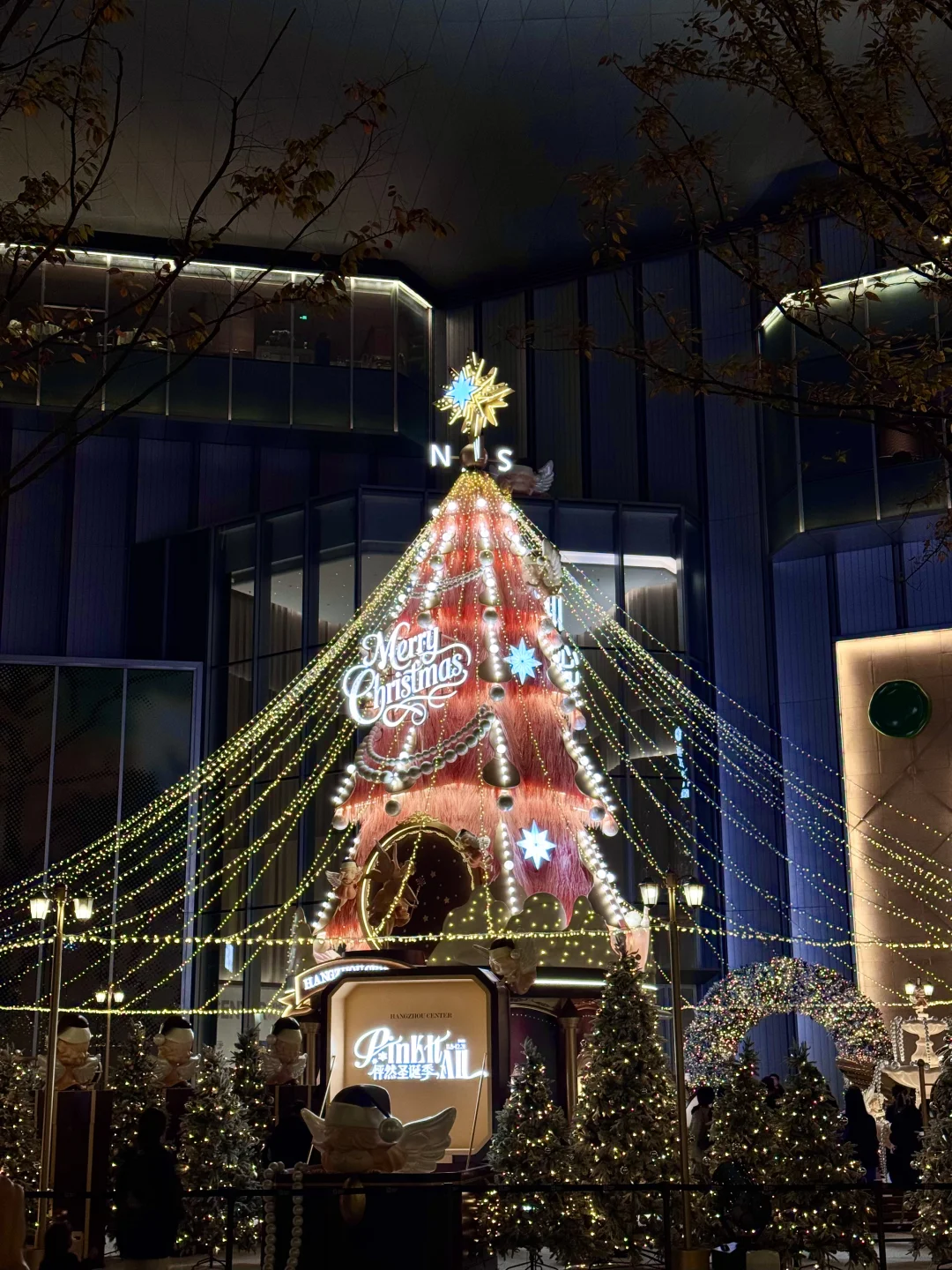 杭州中心粉色圣诞树🎄🎀明天亮灯飘雪冲吗
