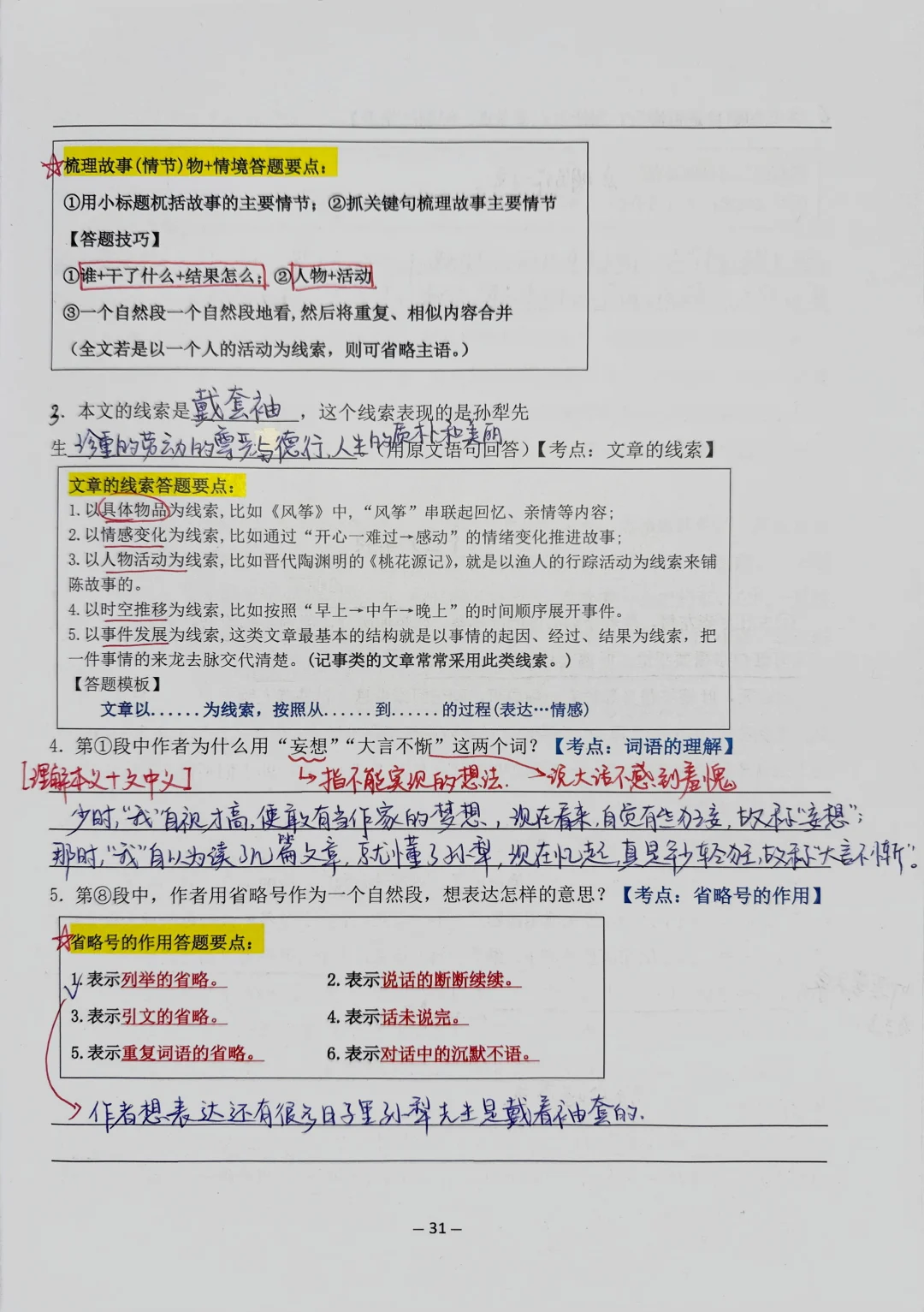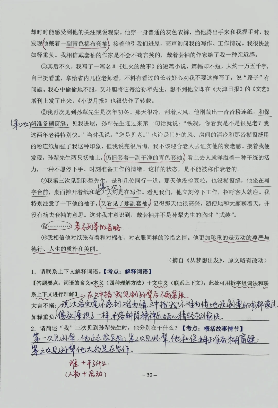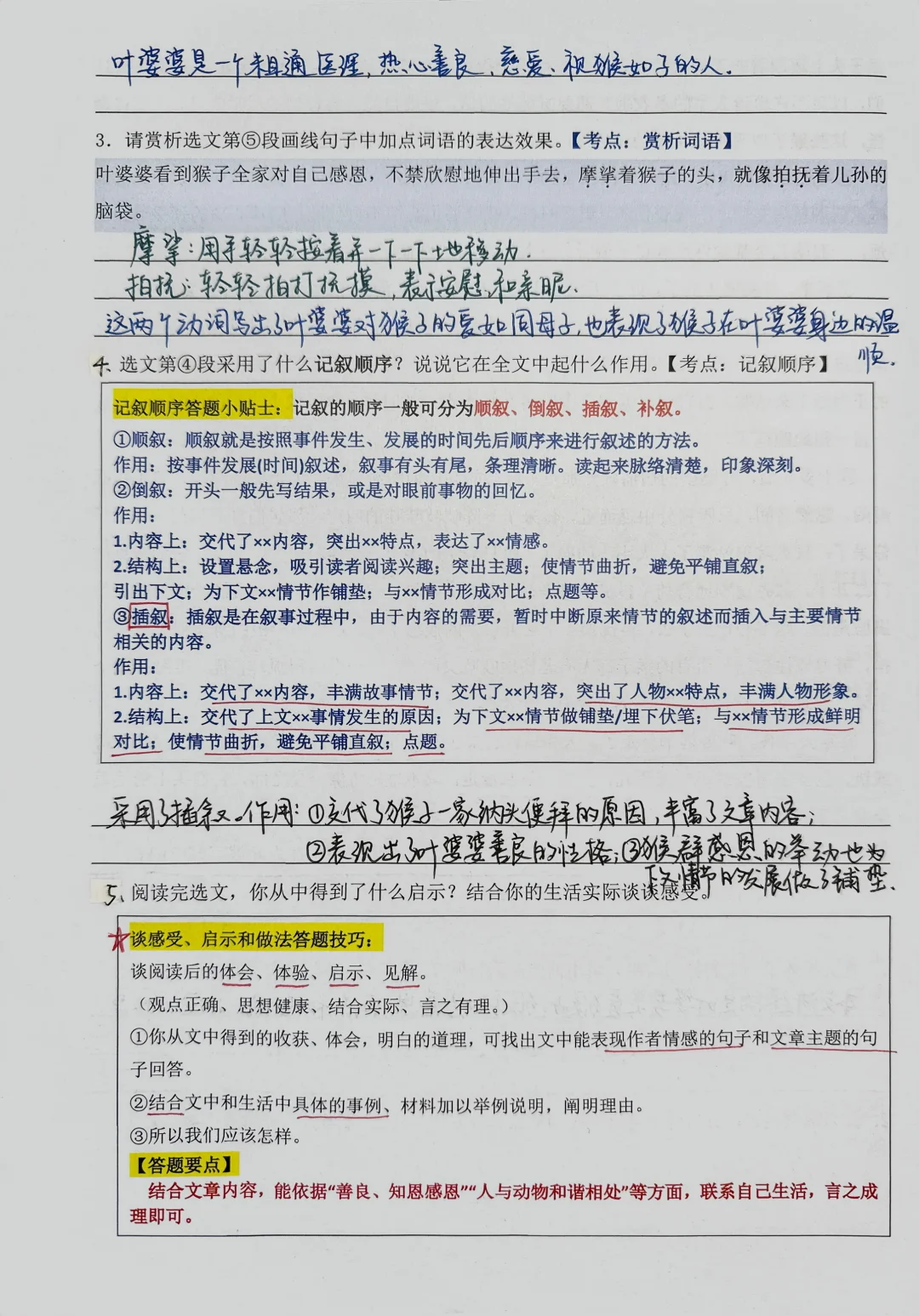 👉今日阅读训练打卡: 【12】带袖套的孙犁先生 【13】孝猴 👉训练重点题型: [一R]联系上下文理解词语的含义(本义➕文中义) [二R]概括故事情节 [三R]标题的作用 [四R]分析人物的形象 [五R]谈谈自己的感受和启示 将答题模板融入到阅读题中,就是为了让孩子们在真实的阅读题中运用我总结的答题模板,这样有助于他们理解性地有意识地去识记这些模板,多加训练,做题的思路就会越来越清晰。