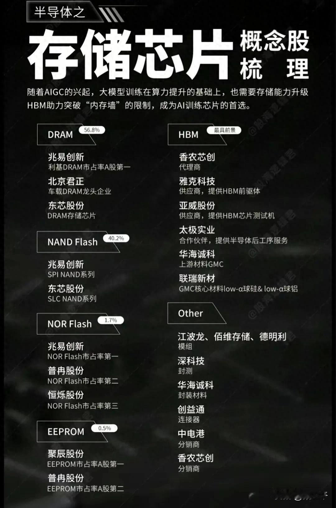 铠侠暴雷, 闪迪、西部数据和希捷硬盘瑟瑟发抖。 存储芯片退潮后, 裸泳的会慢慢暴露在阳光下。 上面这些品牌存储芯片的特点: 中低端没有技术壁垒, 2个季度就会出现产能过剩。 而本轮Ai浪潮推动的是HBM高端存储需求, A股这样的公司只有: 兆易创新、澜起科技以及要上市的长鑫存储, 像德明利配套华为可能有点机会, 但江波龙、香浓芯创、百维存储这些, 只能告诉你赚到了删自选不要回头! …