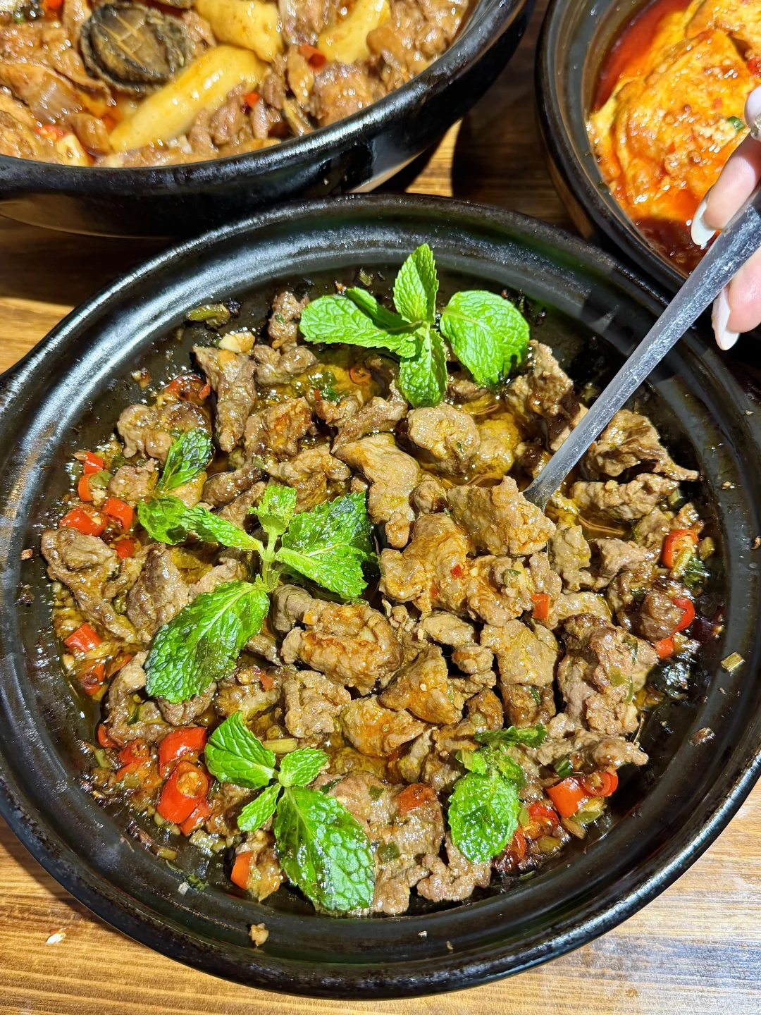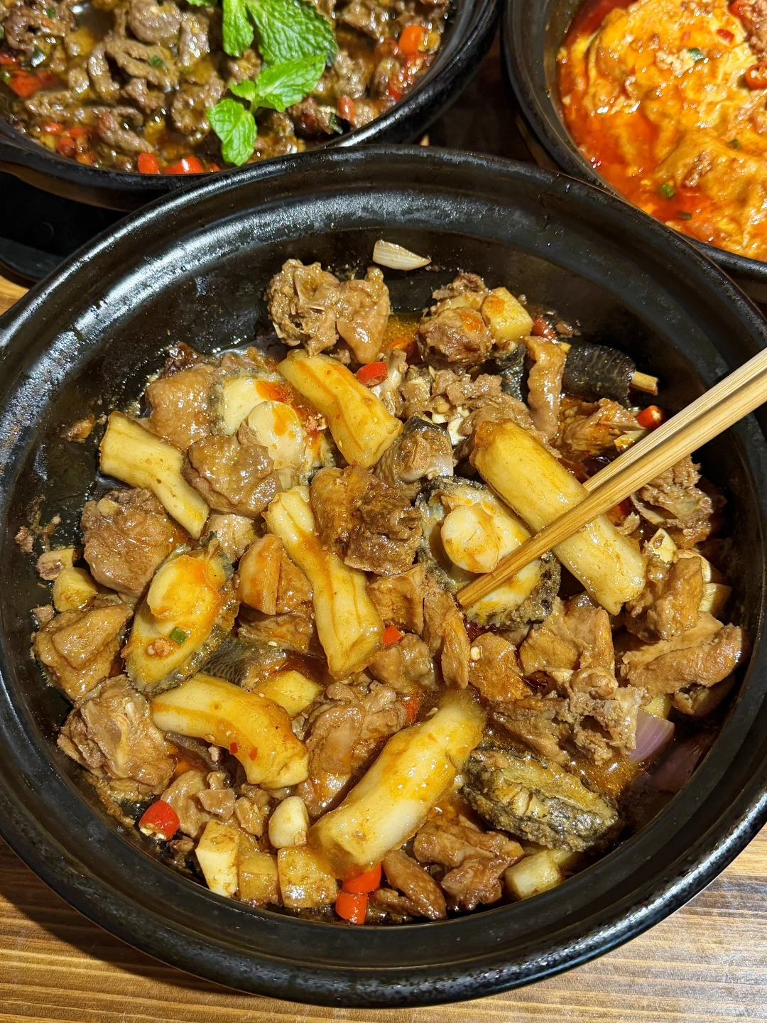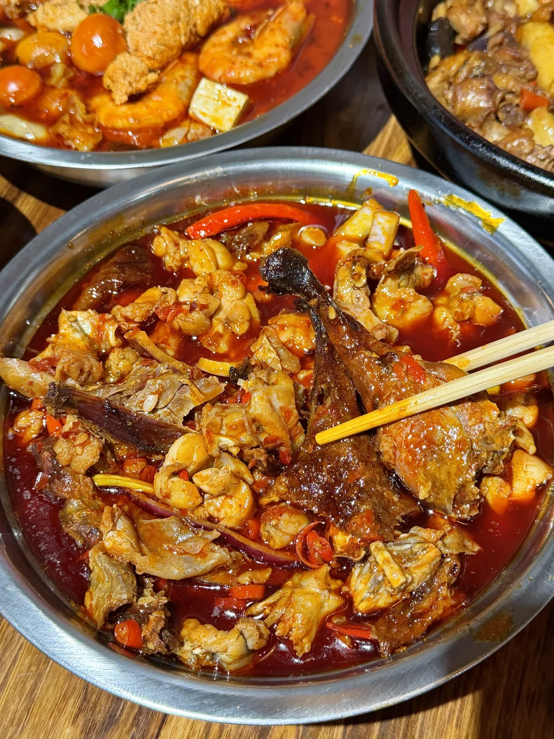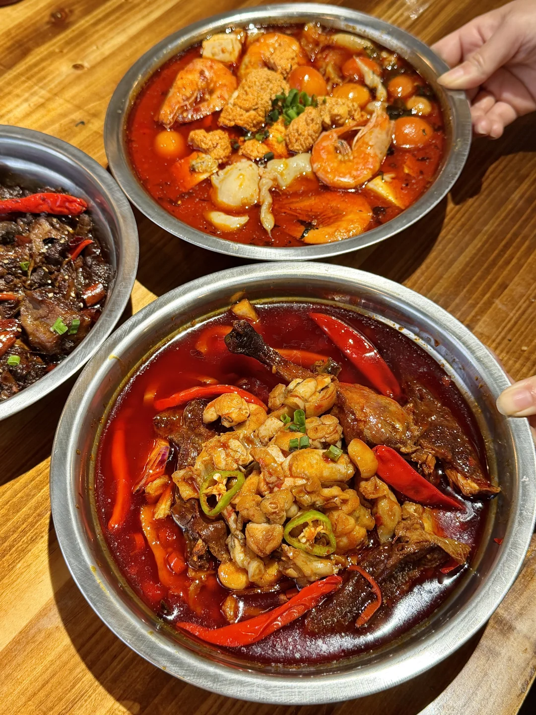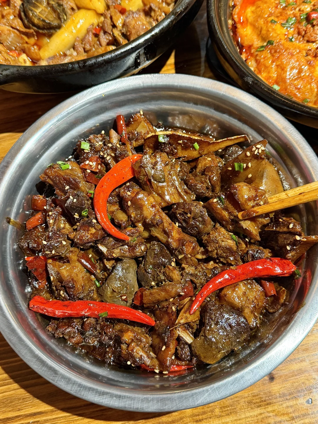 私心不想让这家太火啊😭😭确实是我心中长沙的必吃top榜!除了要排队…其余口味服务我夸爆!!就在五一广场,不是10年长沙土著找不到…… 酱板鸭牛蛙是扛把子,牛蛙裹满了汤汁拌饭绝了!!还有鱼籽鱼泡、鲍鱼走地鸡、黑鸭煲都好好吃🤤一定是我会再去n刷的苍蝇馆子!(叫:老颜家砂锅湘菜)