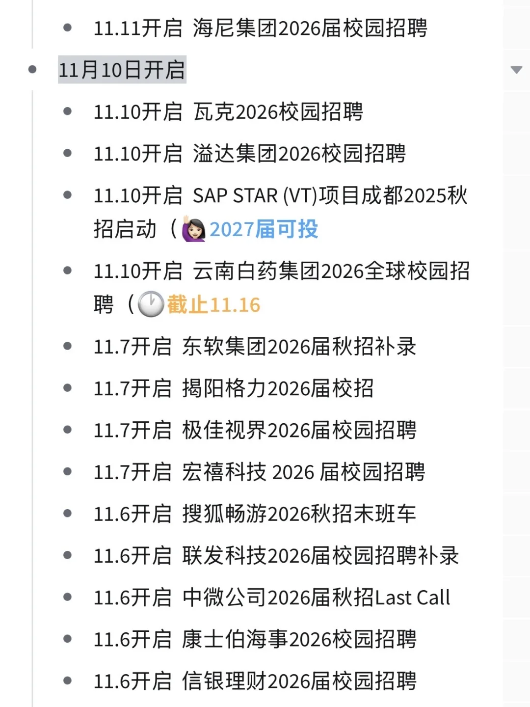 以为秋招到10月就结束了?其实11月还有一大批公司在悄悄捞人!有的是在补录,有的是新开业务线,而且很多都免笔试、流程快、面试友好,真的是秋招末班车的黄金时机 · 📍建议这段时间重点关注 ▪️刚扩招或有新业务线的公司 ▪️挖掘快截止的岗位 ▪️补录轮:HR在二面、三面阶段主动捞人 · 坚持日更✊🏻,帮大家在找工作路上顺利拿到offer!