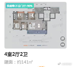 保利九里和颂2023.3.28日拿地2023.9.21日开卖2025.8.28日交房2025.10.29日二手挂牌2年7个月,完成拿地到二手的速度。141户型,套内实得115.7,二手得房率82%,购房通计算是90%。电梯入户预估还有8㎡,算下来87.7%。这个户型当初应该是400左右拿下。半迭代二手上市,对二手市场的冲击有限。