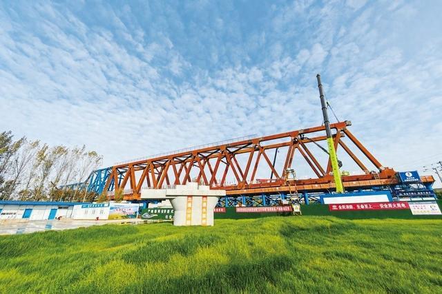 11月11日,京九铁路聊城北站上行线改建工程跨周公河特大桥在加紧施工。周公河特大桥为该项目控制性工程,主跨钢桁梁全长146米,钢桁梁采用边拼装、边顶推、后转体、落梁就位的施工方法,预计12月中下旬完工。