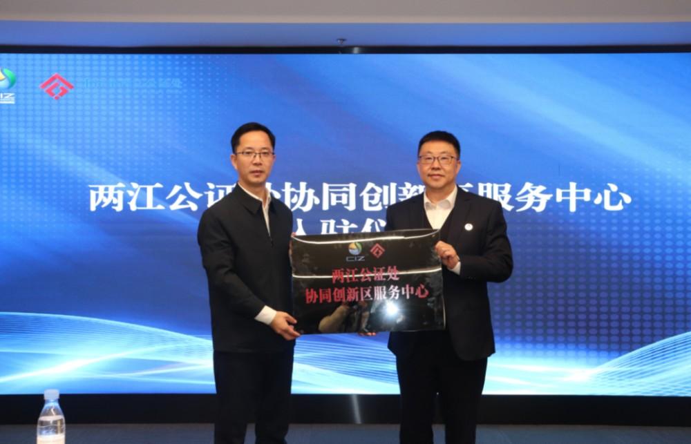▲两江公证处协同创新区服务中心揭牌