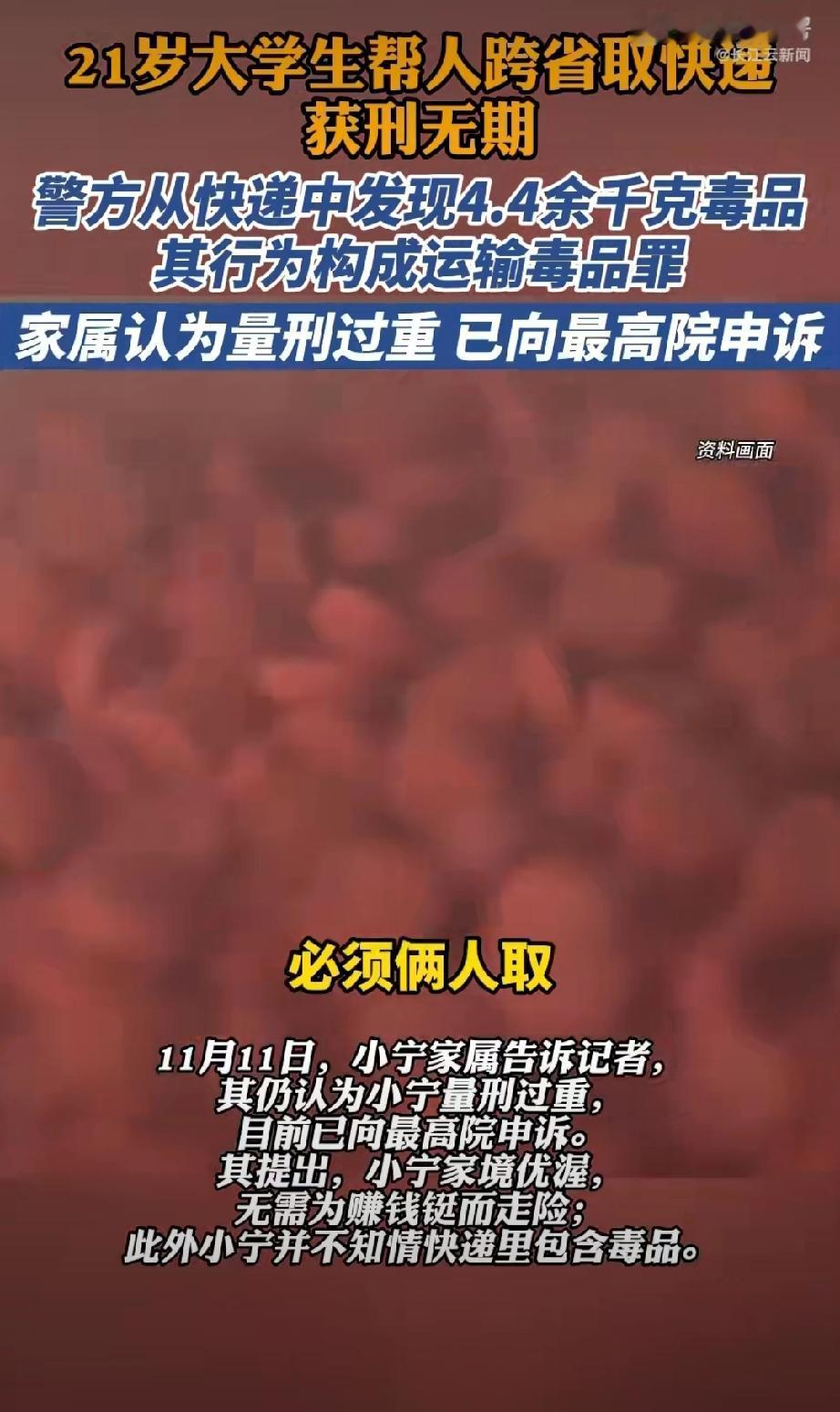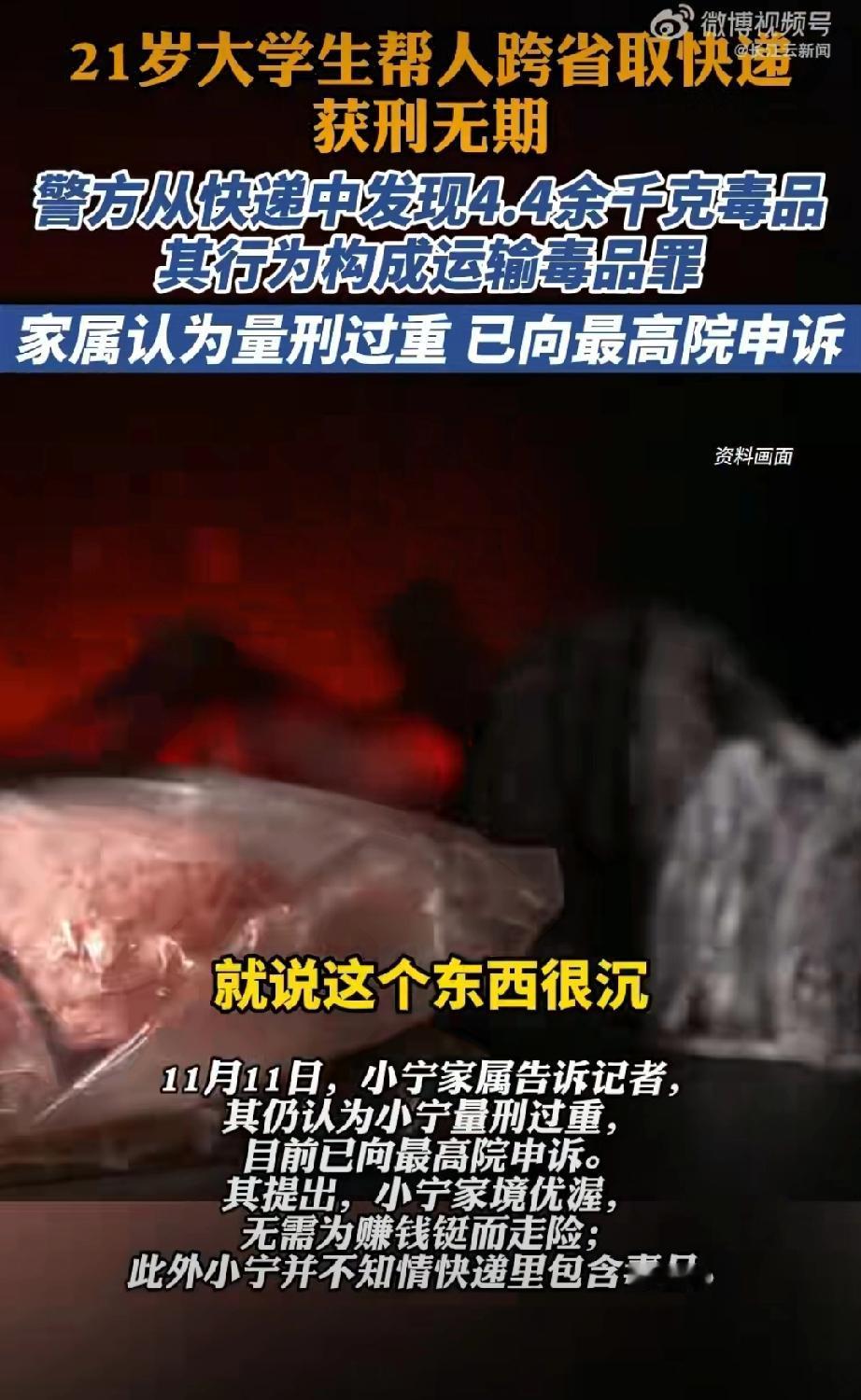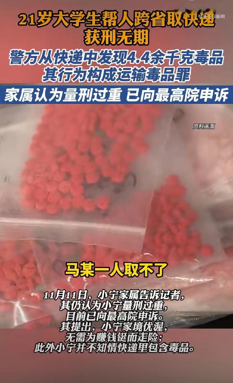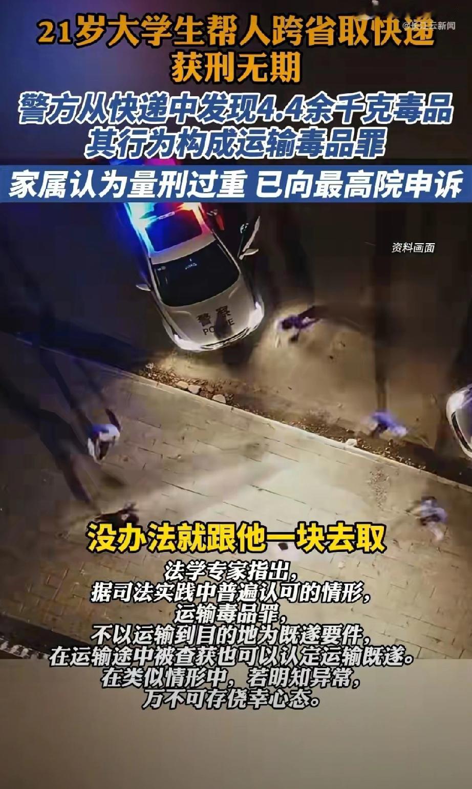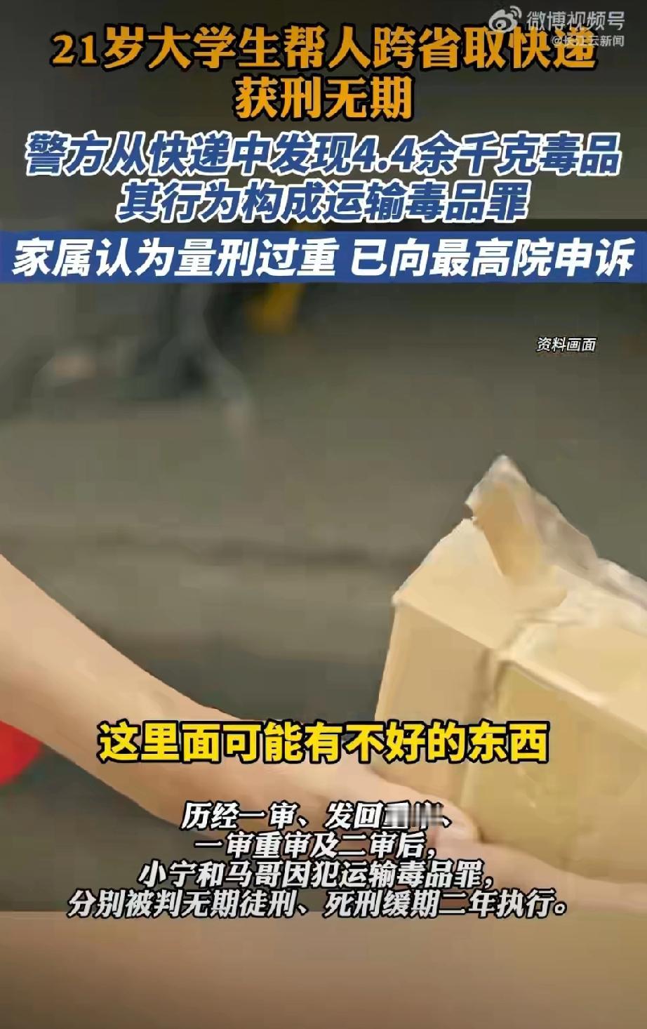 21岁大学生帮人跨省取快递获刑无期! 21岁,大学生,取快递,被判无期都提了,标题就不提取个快递1万和4.4千克毒品。取个快递给你1万,这事违不违法你心里没数吗?活该![再见] 诈骗快递 快递伤人 未成年人寄快递