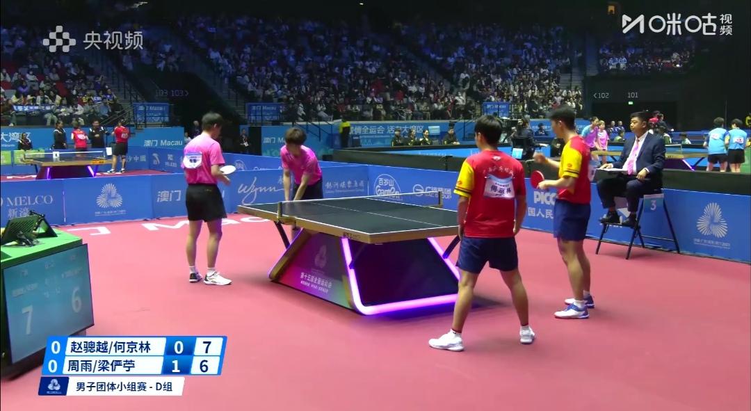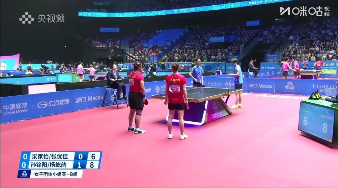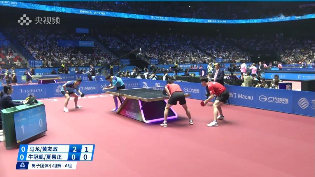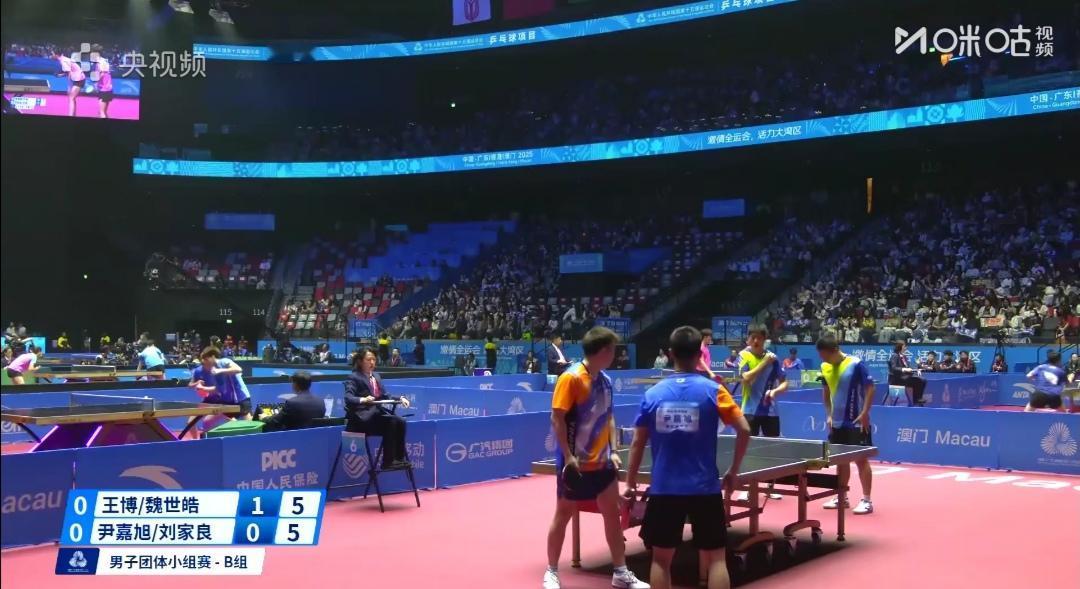 11月14日18:00 全运会团体赛又是八场同时开打! 引人注目的是北京男团马龙/黄友政男双3:1胜河南牛冠凯/夏易正。 王楚钦单打首局11:9河南于何一。 孙颖莎领衔河北女团T5台。莎莎单打首局11:9胜福李仁思佳。 王曼昱领衔黑龙江女团T1台。王曼昱单打首局11:9胜天津刘炜珊。 T2台,上海女团孙铭阳/杨屹韵“攻削”组合3:0零封山西梁家怡/张优佳。 上海陈熠单打首局11:8胜山西韩菲儿。 ………。