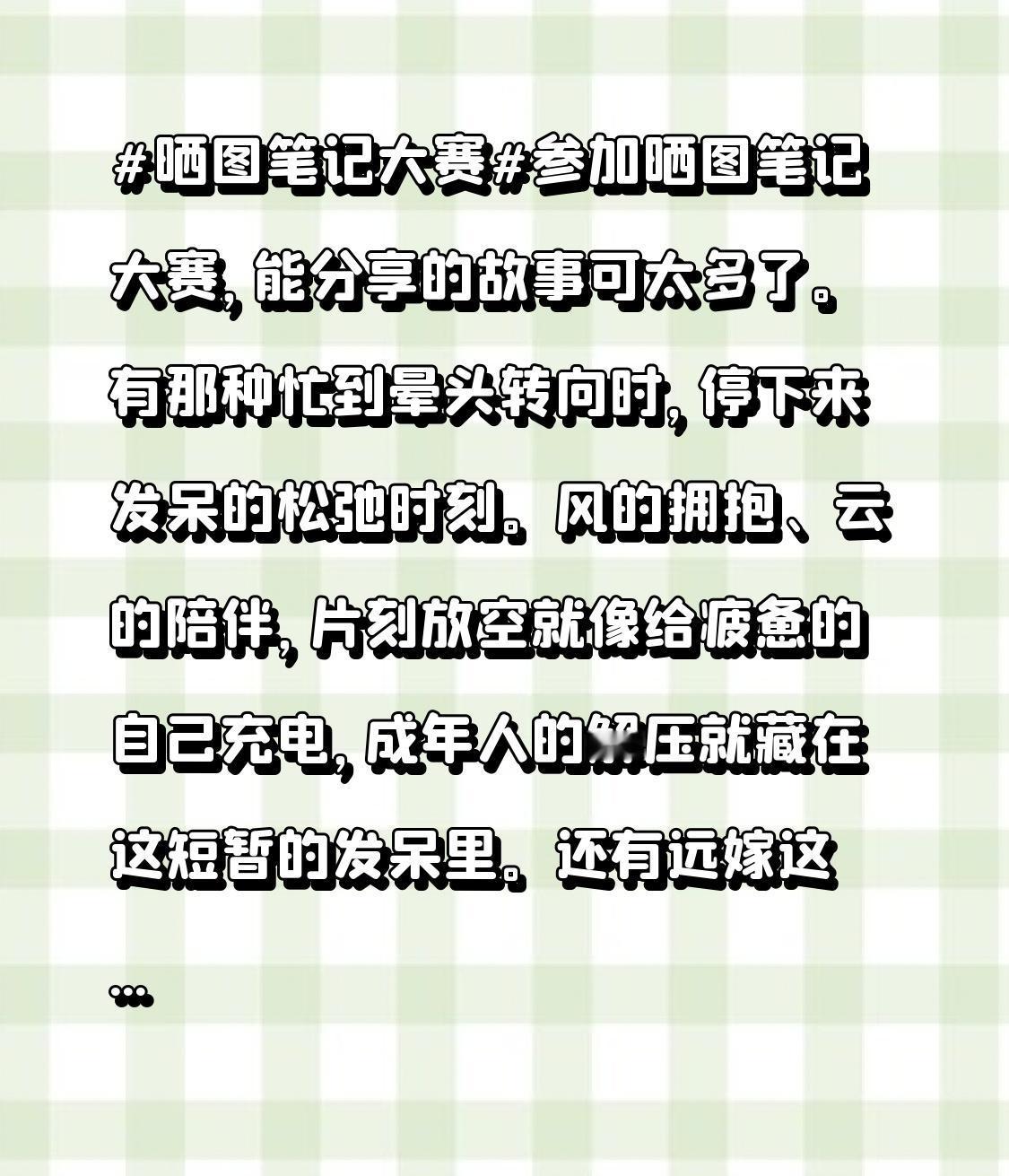 有那种忙到晕头转向时,停下来发呆的松弛时刻。风的拥抱、云的陪伴,片刻放空就像给疲惫的自己充电,成年人的解压就藏在这短暂的发呆里。 还有远嫁这个沉重话题。一位女性远嫁国外多年后回国,父母却不愿开门,背后是几代人的隔阂。数据显示跨国婚姻数量波动,大部分还伴随着家庭紧张。跨文化婚姻里,90%的夫妇会因饮食、宗教、教育等产生重大分歧。远嫁不是只有浪漫,更多的是与现实文化的碰撞。在晒图笔记大赛里,这些故事都值得被记录。