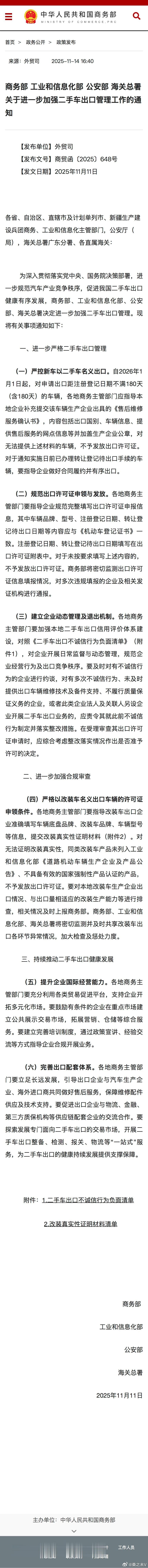 二手车出口戴上“紧箍咒”,终结“零公里二手车”出口,登记不满180天出口需得到车企售后授权。