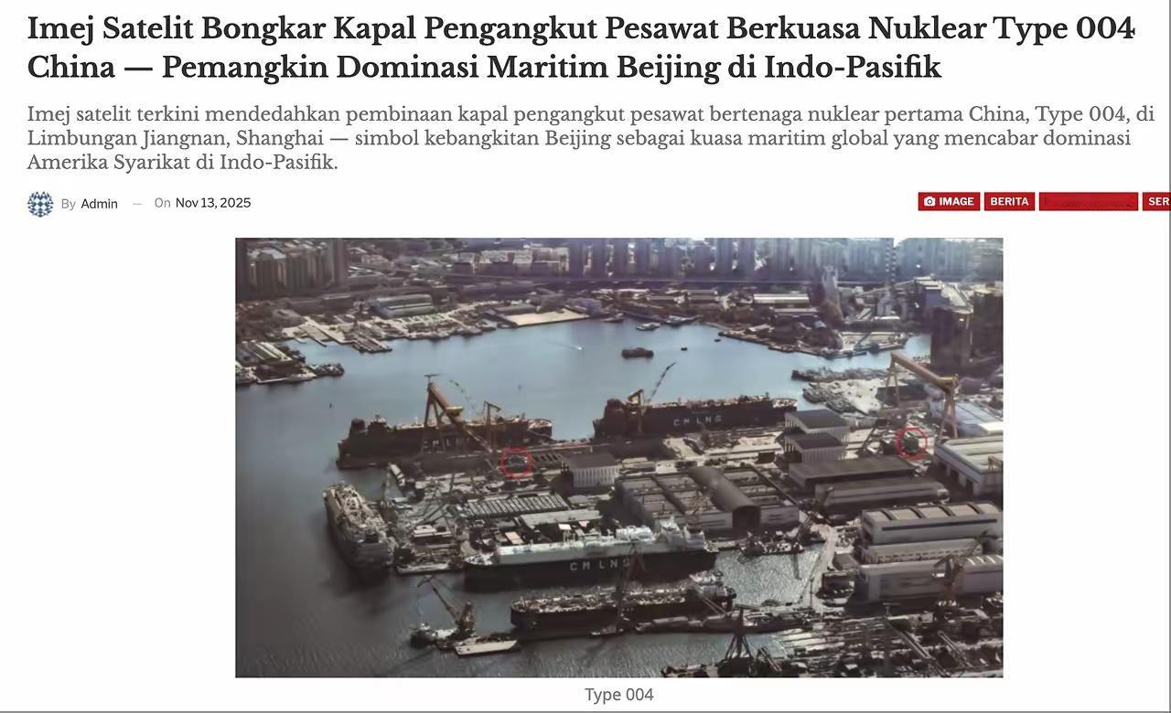 这谁受得了,全球最大航母004已经完成70%,004A也在路上了? 据《亚洲防务》11月14日报道,最新卫星图像显示,中国正在建造的004号航母,基本可以确定是核动力航母。 反应堆舱段、中段巨型模块、甲板主结构以及部分飞行甲板设备已纷纷露出具体轮廓,整个舰体形状已十分清晰。值得注意的是,造船厂内部的核装配车间、屏蔽材料库、重吊装系统正在进一步扩建,说明004号并非单舰工程,而是更大规模核动力航母计划的开端。 卫星图像里那个矗立在舰体中的圆柱形结构,成了最有力的证据。多位军事专家认定,这就是核反应堆安全壳的典型特征。舰岛位置后移且体积大幅缩小,更关键的是——烟囱不见了!常规动力航母需要排放废气的烟囱,而核动力航母根本不需要这玩意儿。 这回中国人玩的是第四代核反应堆技术,很可能是先进的钍基熔盐堆。这种反应堆安全性极高,几乎不存在堆芯熔毁风险,燃料利用率比传统铀堆高出三倍,一次加注能让航母在整个服役期内无需更换燃料。反应堆功率超过300兆瓦,澎湃动力足以支撑004型航母实现近乎无限的续航能力。 四条电磁弹射轨道已经准备好,这不是美国福特级采用的交流系统,而是中国独创的中压直流供电系统。这套系统故障率仅为福特级的三分之一,弹射间隔可以缩短到20秒,单日舰载机出动架次有望突破400次,几乎是福特级的两倍。中国人解决了连美国人都头疼的电磁弹射技术可靠性问题,实现了真正的后来者居上。 想象一下这个画面:满载排水量逼近12万吨的巨舰,搭载90-100架舰载机,包括歼-35隐身战机、歼-15T弹射版、空警-600预警机以及各种无人机。它在055型万吨驱逐舰和新型核潜艇的护卫下,组成一个移动的海上堡垒。核动力赋予它无限航程,意味着中国海军可以在西太平洋、印度洋乃至全球任何关键海域保持长期存在。 从辽宁舰的改装摸索,到山东舰的自主建造,再到福建舰的电磁弹射,中国人用十五年时间走完了其他国家半个多世纪的发展历程。这种“小步快跑、持续迭代”的模式展现出惊人效率。004型航母采用模块化建造技术,预制模块在车间完成大部分舾装后再吊装焊接,建造速度远超美国福特级。从2024年底铺设龙骨到2025年9月舰体整体成型,只用了不到一年时间。 造船厂内核装配车间和重吊装系统的扩建,暗示着004A甚至005型航母可能已在规划中。这种超前的布局思维,彰显了中国发展蓝水海军的坚定决心。当其他国家还在争论要不要造新航母时,中国人已经默默打造起完整的航母制造体系。 004型核动力航母的出现,将彻底改变西太平洋的海上力量平衡。它意味着中国海军将从近海防御型力量,转型为具备全球部署能力的远洋海军。这不是穷兵黩武的扩张,而是对中国遍布全球的海上生命线的必要保护——国家利益到哪里,海军的力量就应该能覆盖到哪里。 各位读者你们怎么看?欢迎在评论区讨论。