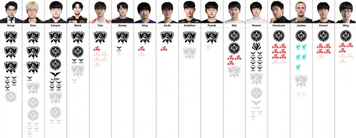 打野位选手荣誉图更新:Bengi凭借更多的LCK联赛冠军位列第一,Oner第二