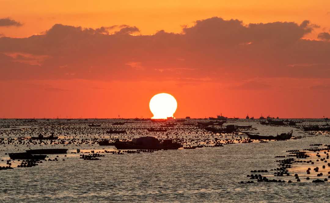 11月14日,山东省荣成市爱伦湾海洋牧场,养殖工人驾驶养殖船只从事海带科学育苗作业,为提升海带成活率和品质做好前期准备。
