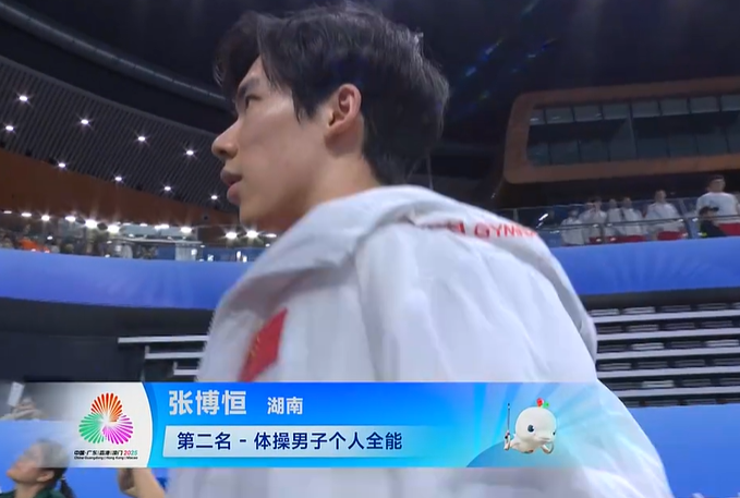 湖南队的张博恒在最后的单杆项目中在杠上和落地都出现失误仅获得12.566,总分83.397获得亚军,浙江队的杨皓楠82.864获得铜牌。