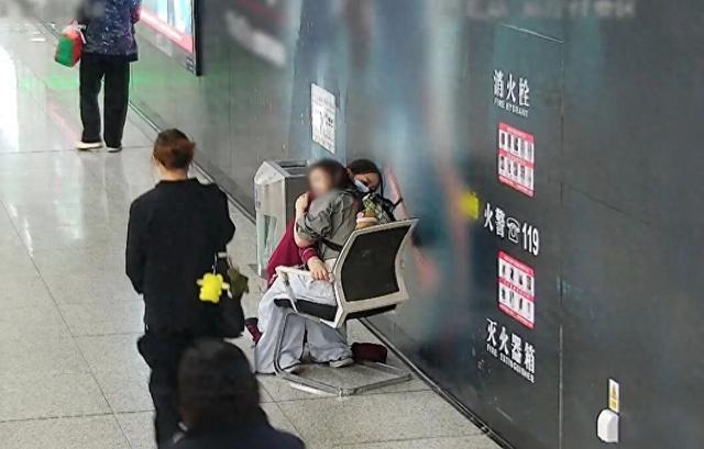 在徐东站,地铁工作人员姚瑶用身体托举突发晕厥的乘客。通讯员供图