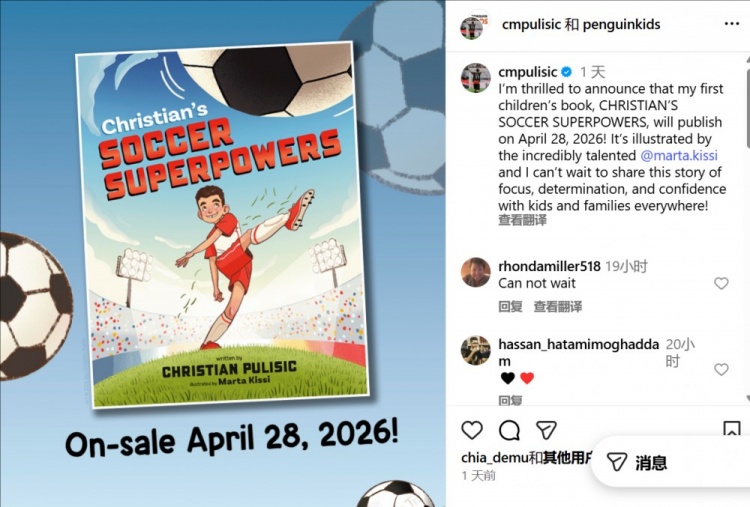 直播吧11月15日讯普利西奇通过社交媒体宣布,将出版儿童读物在美国的孩童群体中宣传足球。