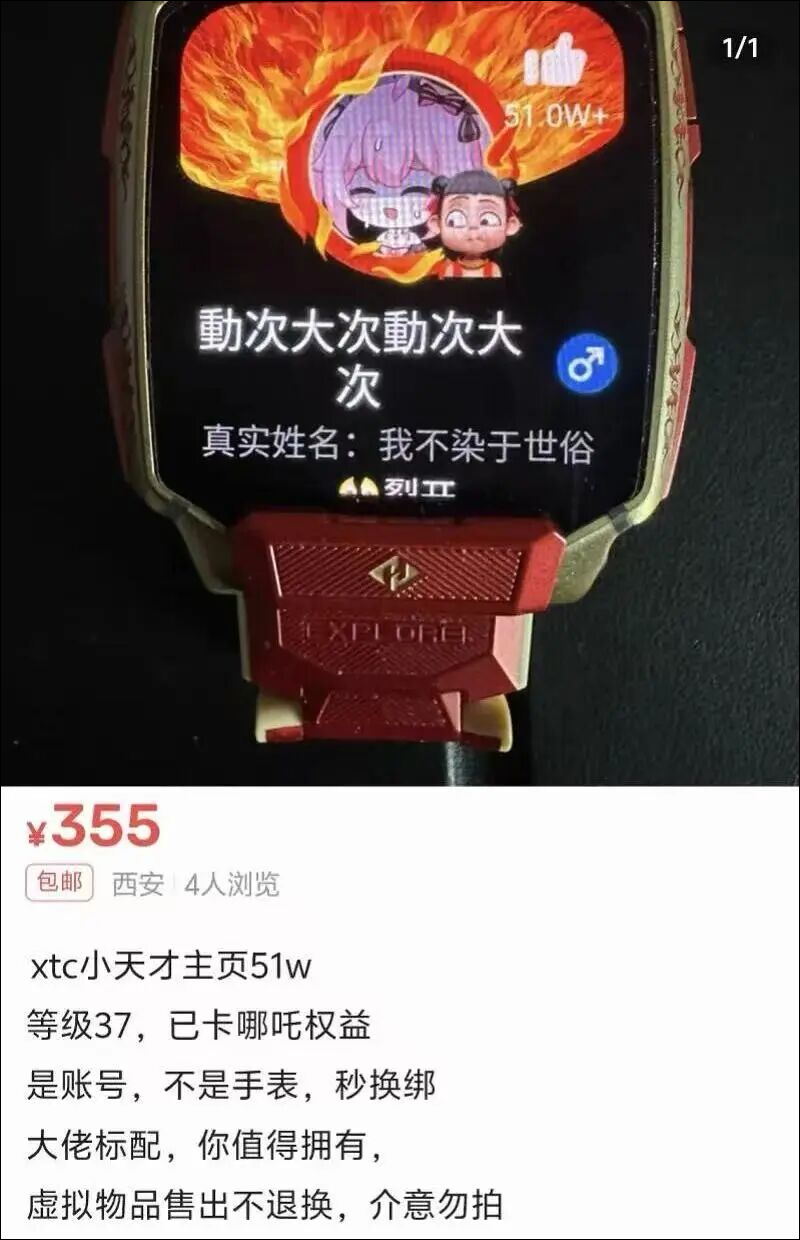 不过有使用小天才手表的用户表示,去二手平台购买已经准备“退圈”的账户更划算。记者检索发现,有卖家在二手平台出售一个号称已经达到51万分的37等级账户,而等级在40级左右的小天才“主页圈”账号普遍价格约在300元至360元区间。